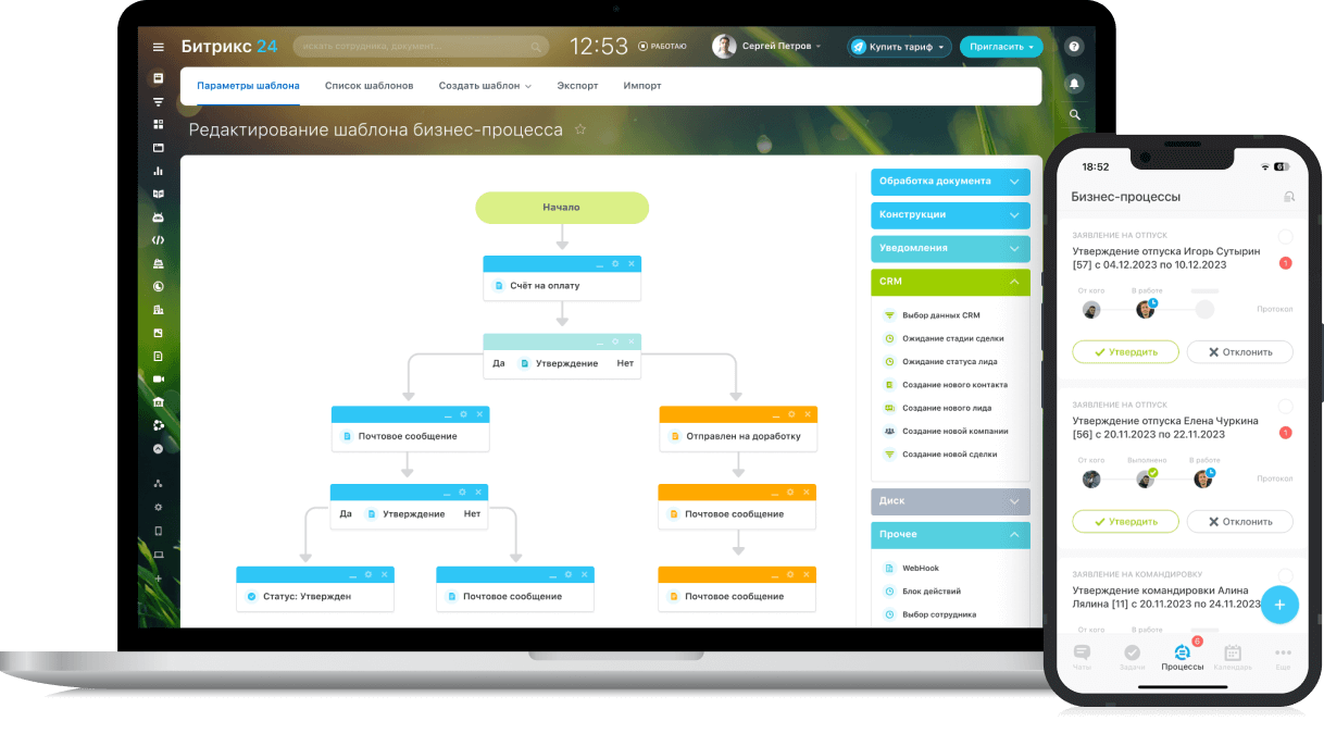 Делегируйте, управляйте сроками, назначайте ответственных, создавайте шаблоны задач. Задача, поставленная в Битрикс24, — это выполненная задача!