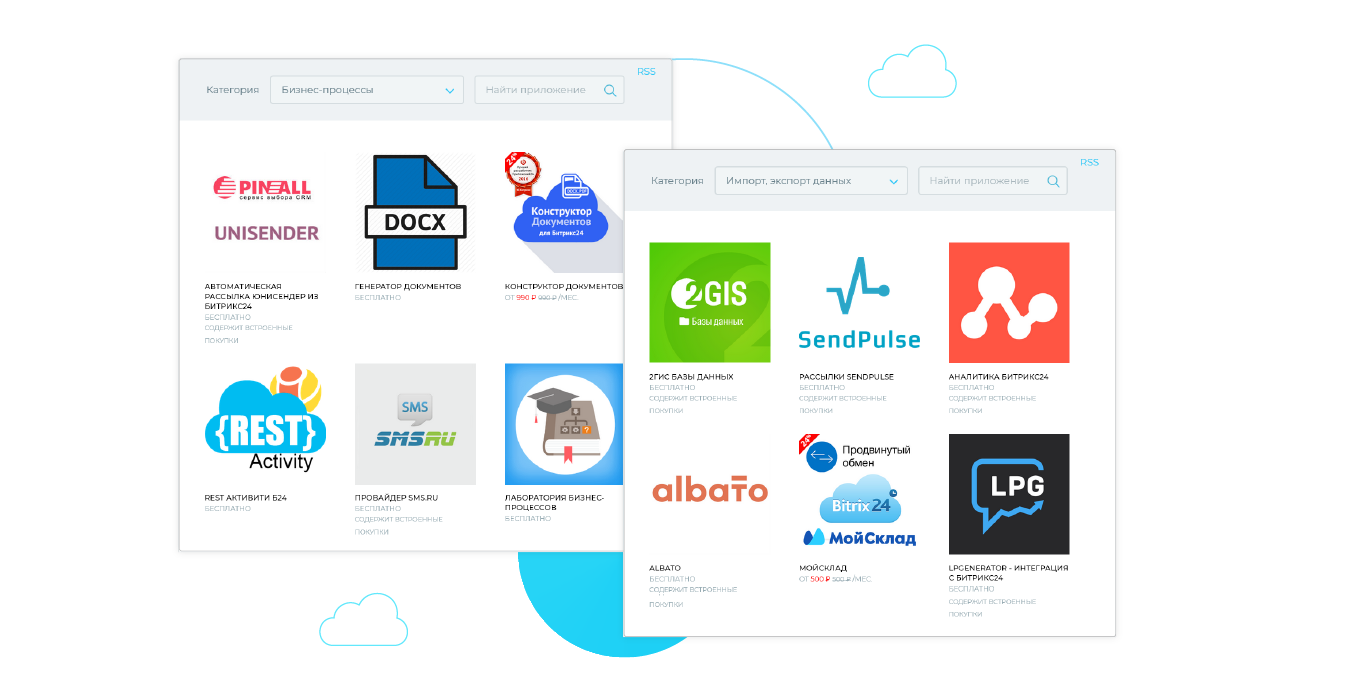 Добавьте новые возможности в свой Битрикс24. В магазине приложений вы найдете готовые шаблоны для лендингов, решения для телефонии, банковских операций, платежных систем и чат-ботов.