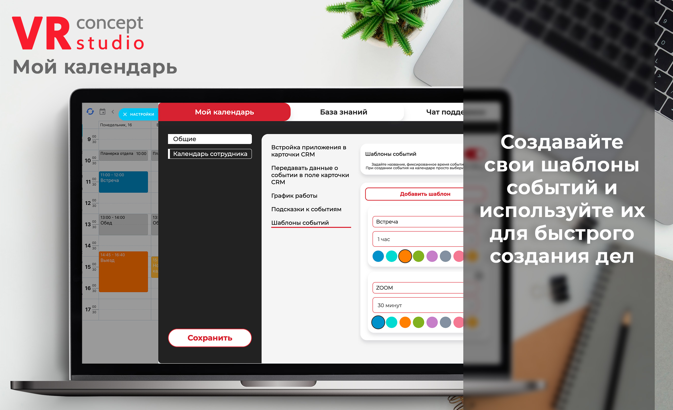 - Настроить шаблоны событий, которые можно использовать для быстрого создания дел