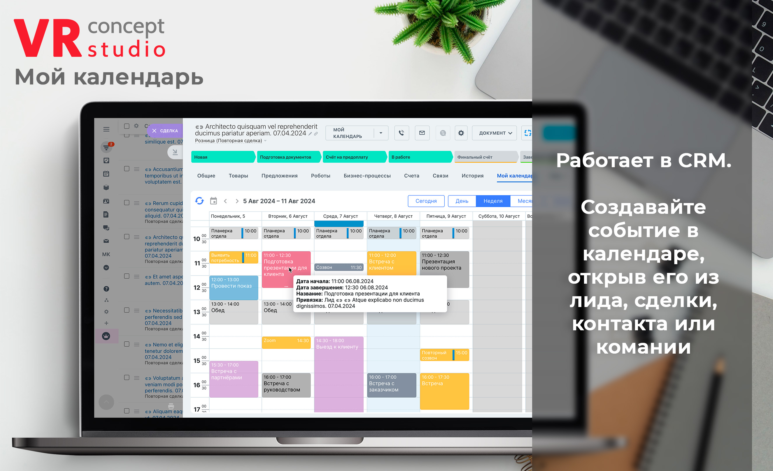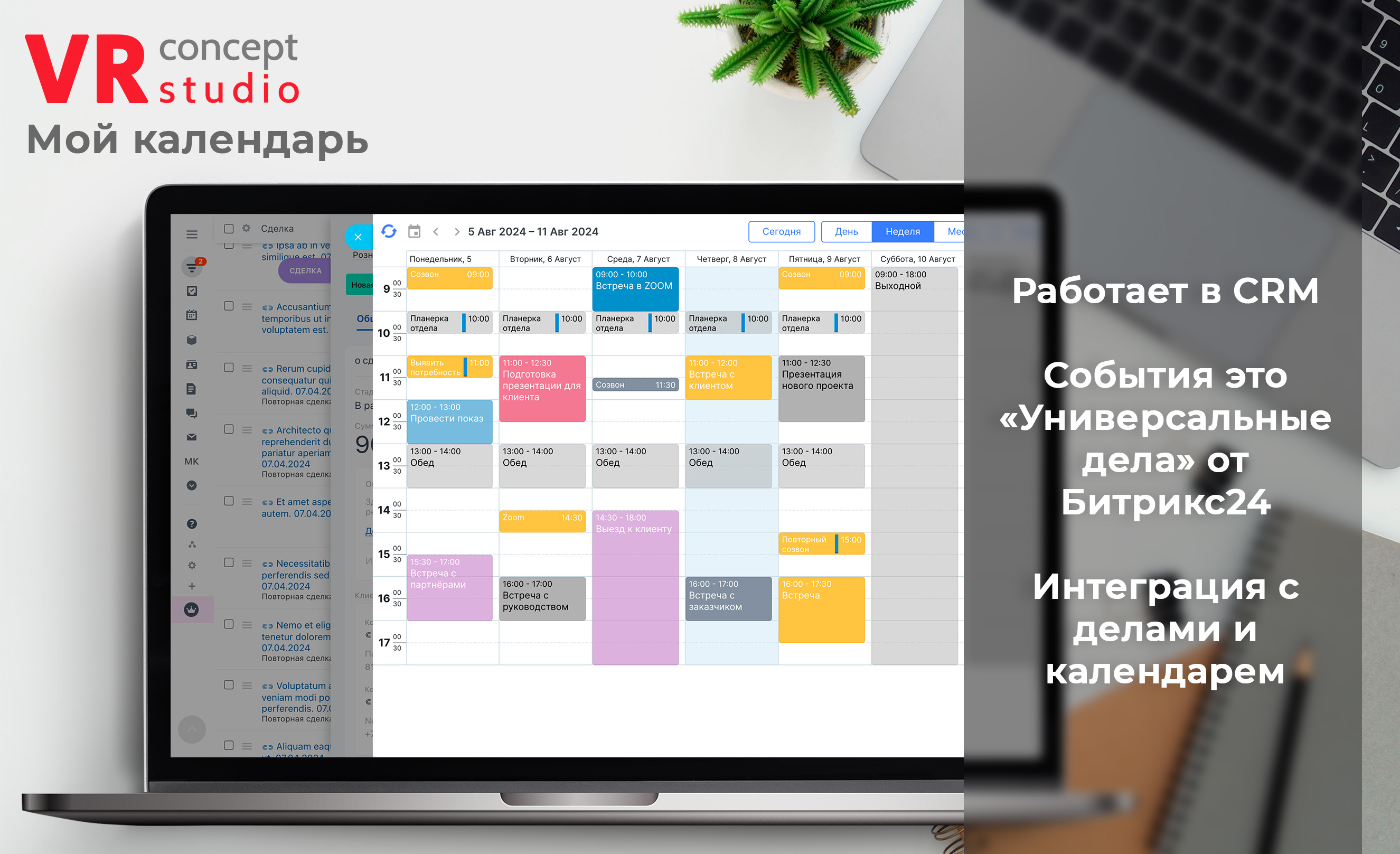 - Создавая событие календаря, вы создаете "Универсальное дело CRM", которое будет связано с элементом CRM, например сделкой