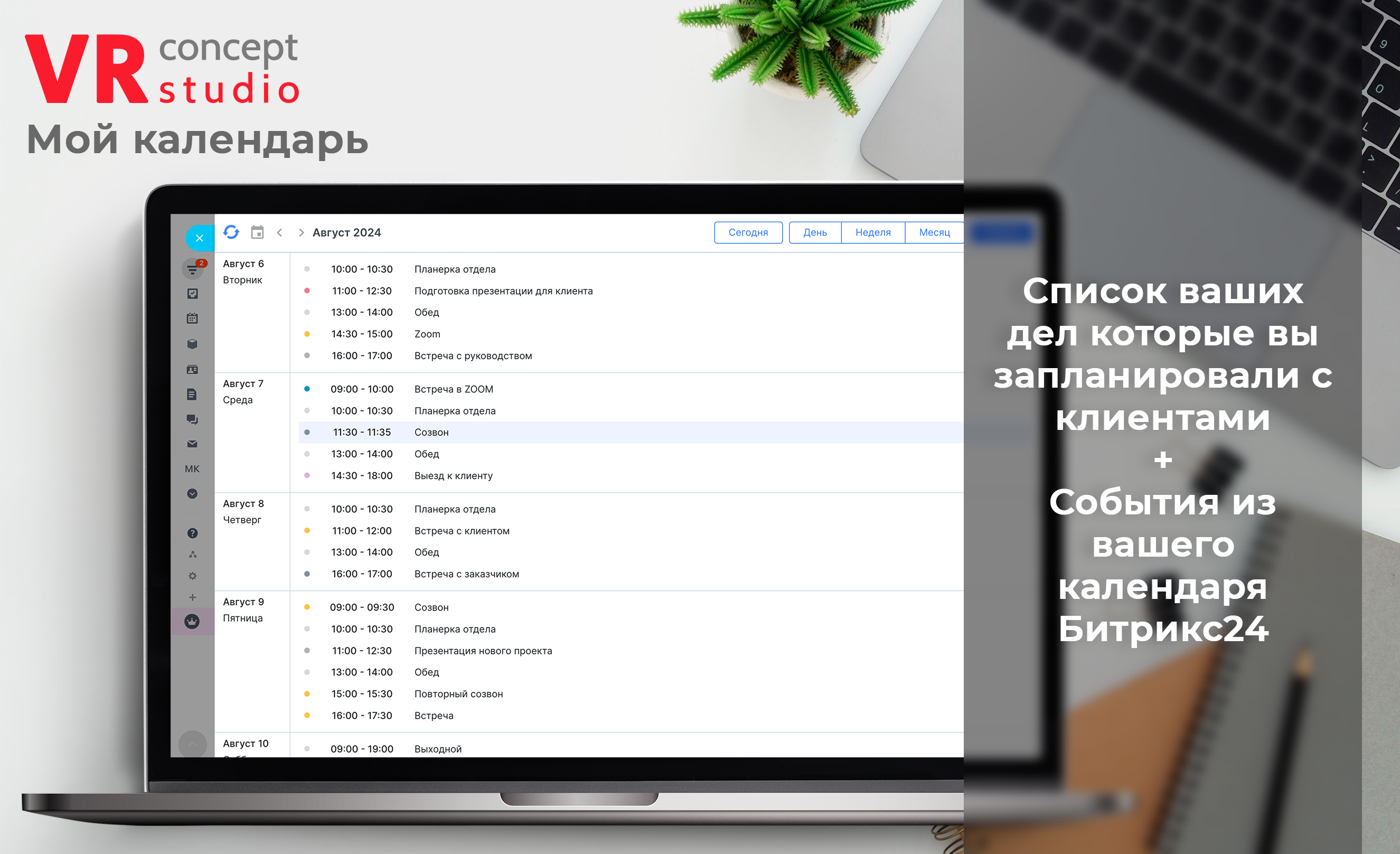 - Также в приложении есть возможность отображать события из вашего календаря Битрикс24 для более удобного планирования