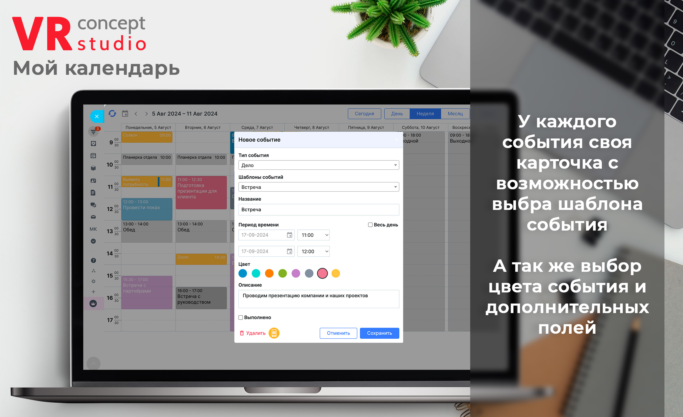 Приложение для планирования дел и встреч с клиентами в удобном интерактивном календаре.