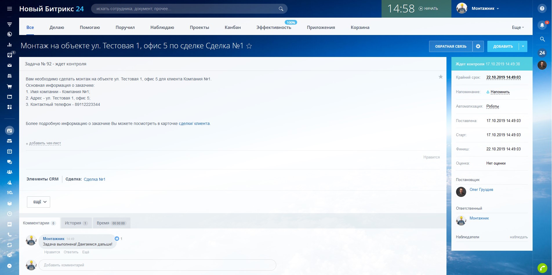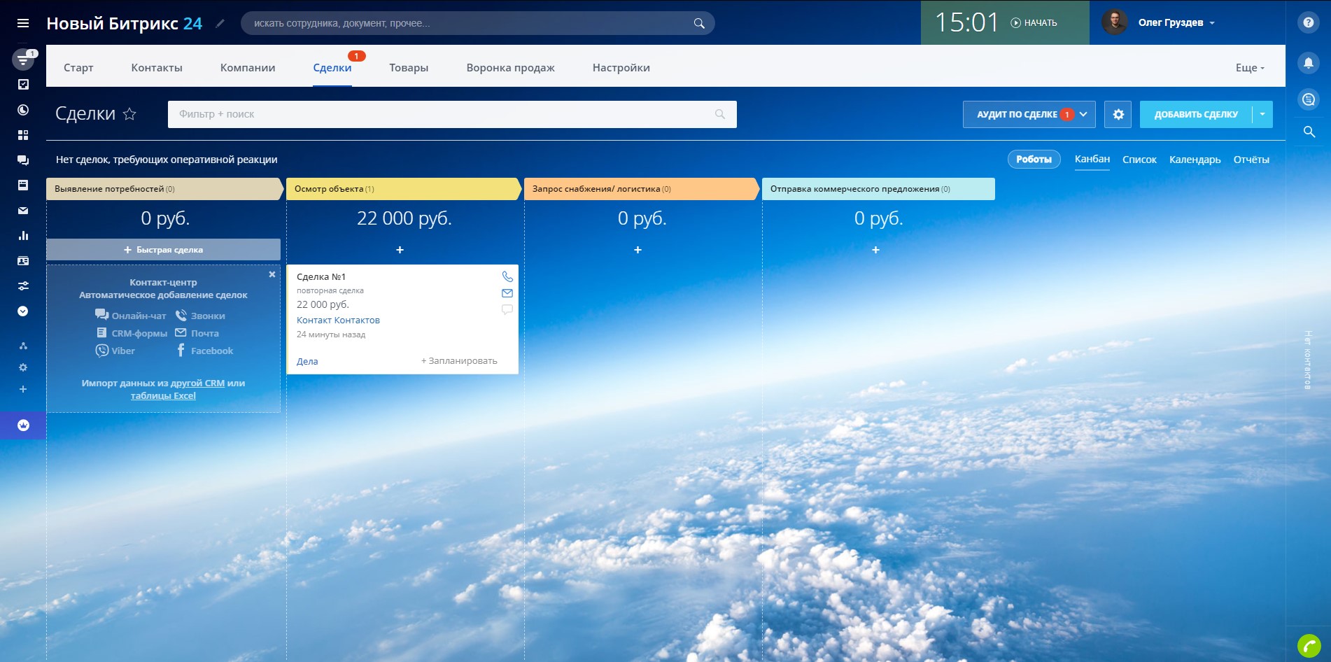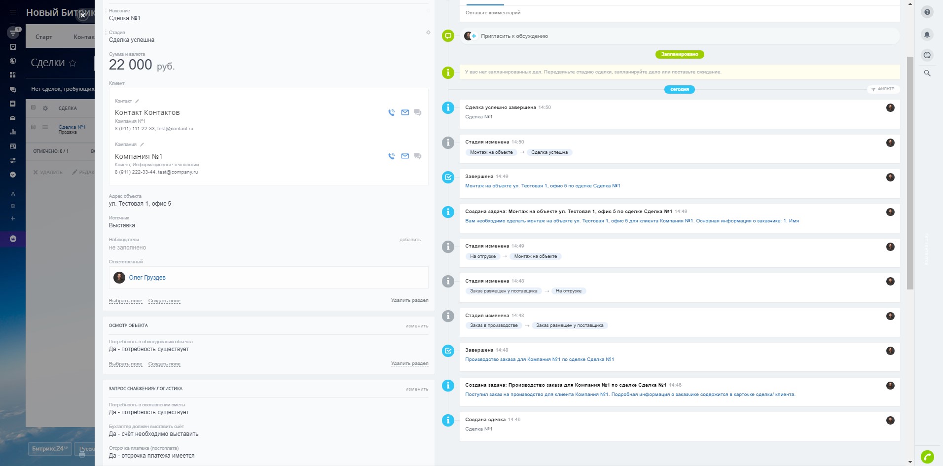 - Автоматизации постановки задач в рамках ключевых стадий/ этапов сделок;