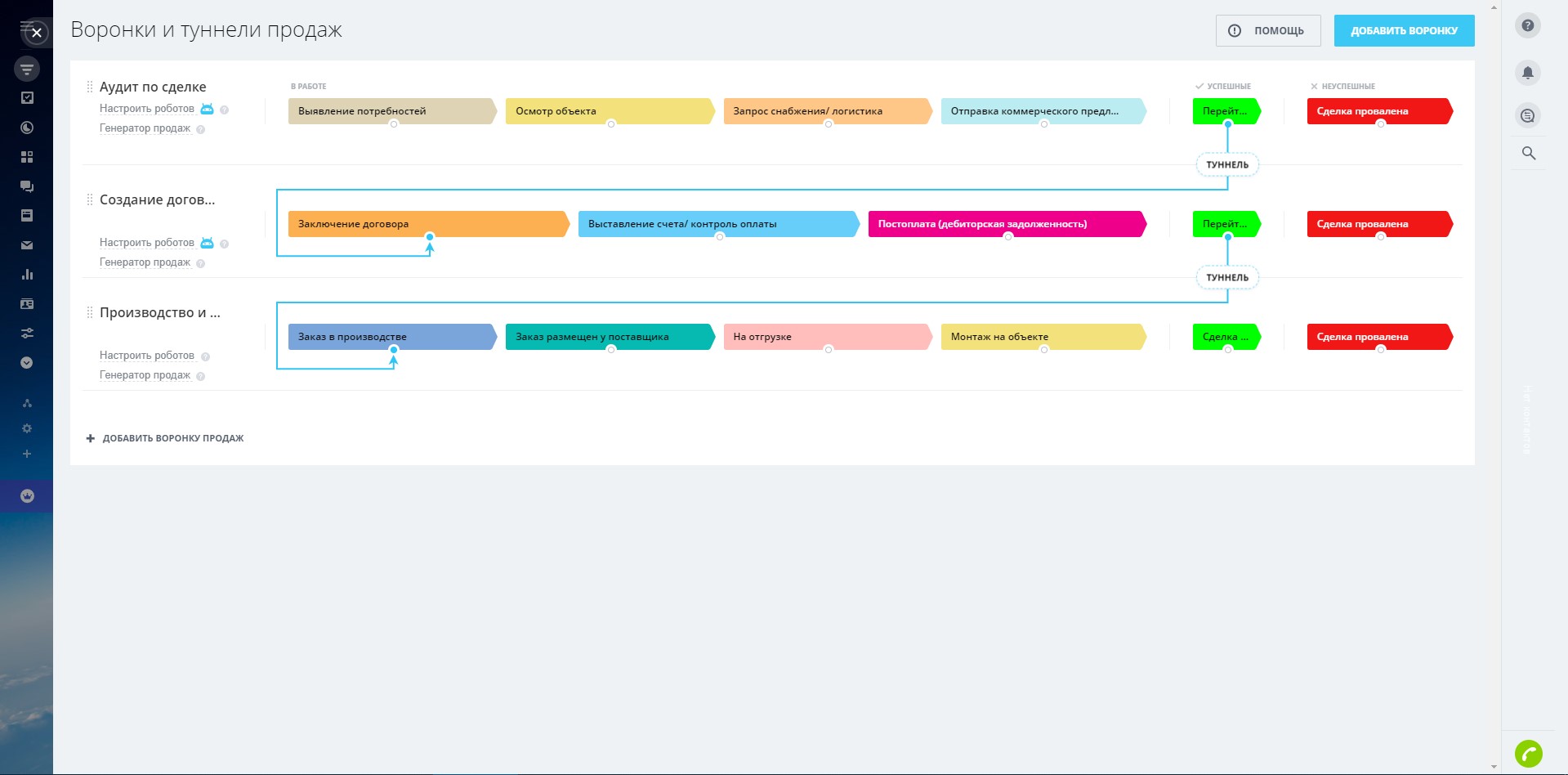 Работа c туннелем продаж/воронками продаж (автоматизация бизнес-процессов)