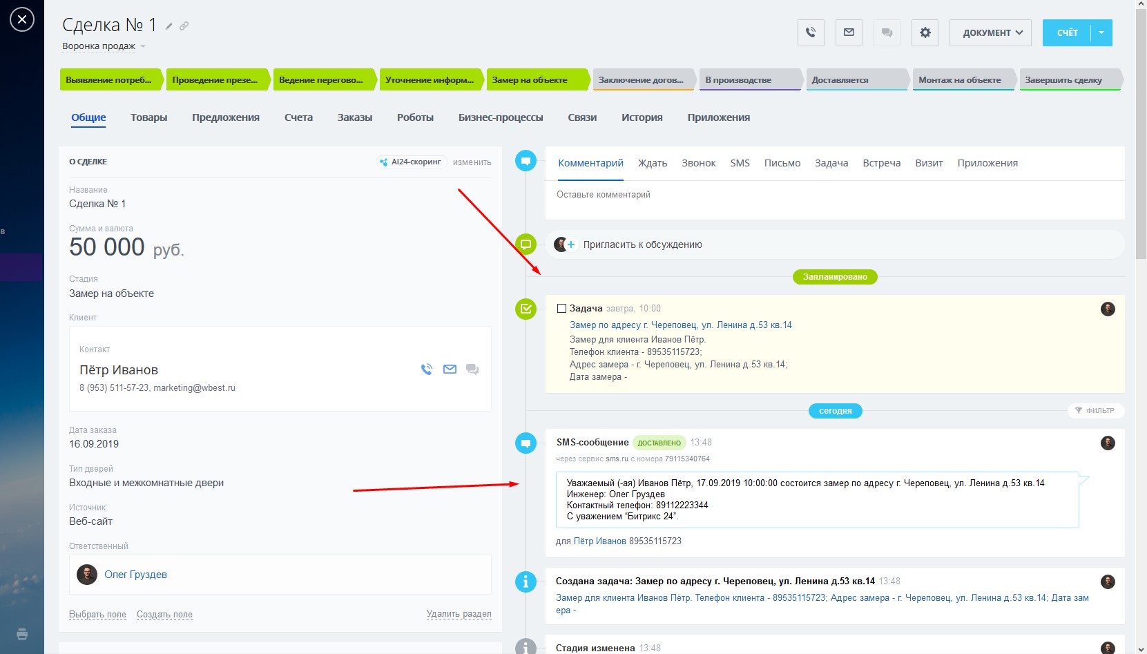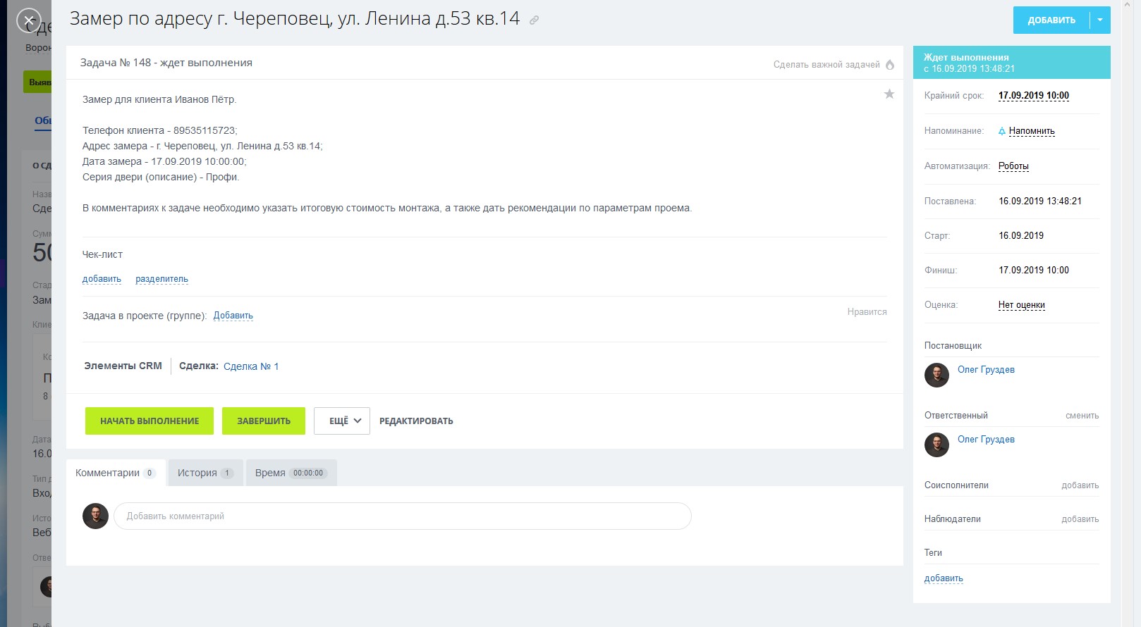 - Автоматизации постановки задач в рамках ключевых стадий/ этапов сделок