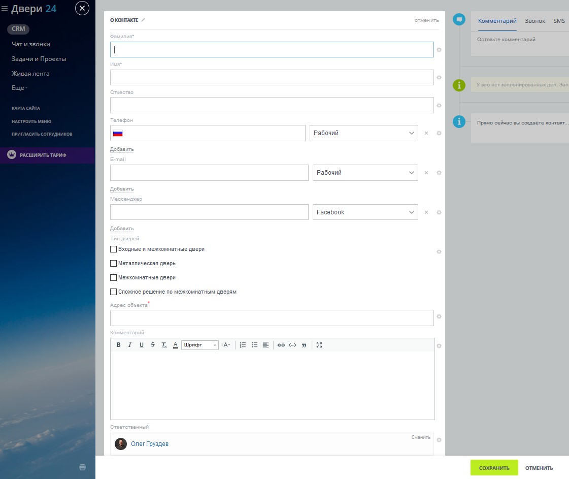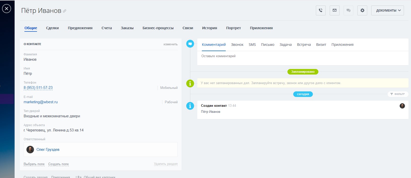 - Автоматизации передачи ключевой информации из карточек контрагентов в карточки сделок