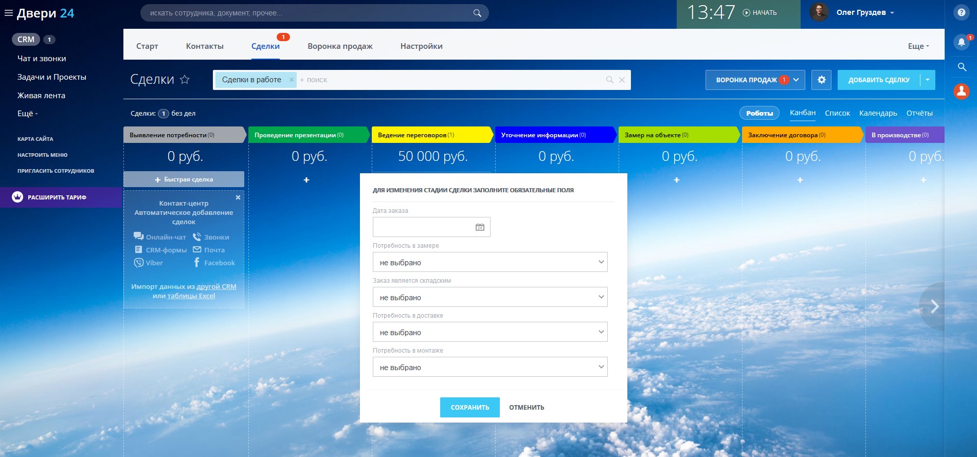 - Автоматизации основных бизнес-процессов по стадиям/ этапам, которые проходят сделки
