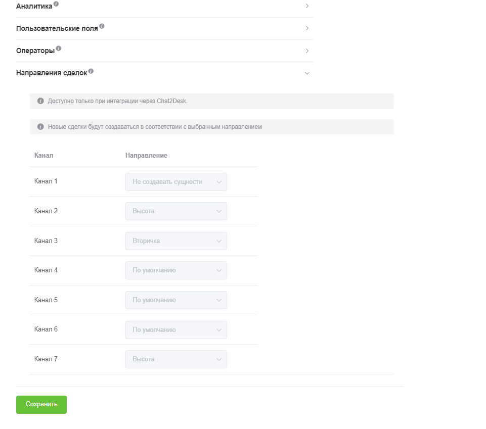 для его работы вам необходимо подключить мессенджеры в сервисе Chat2Desk,