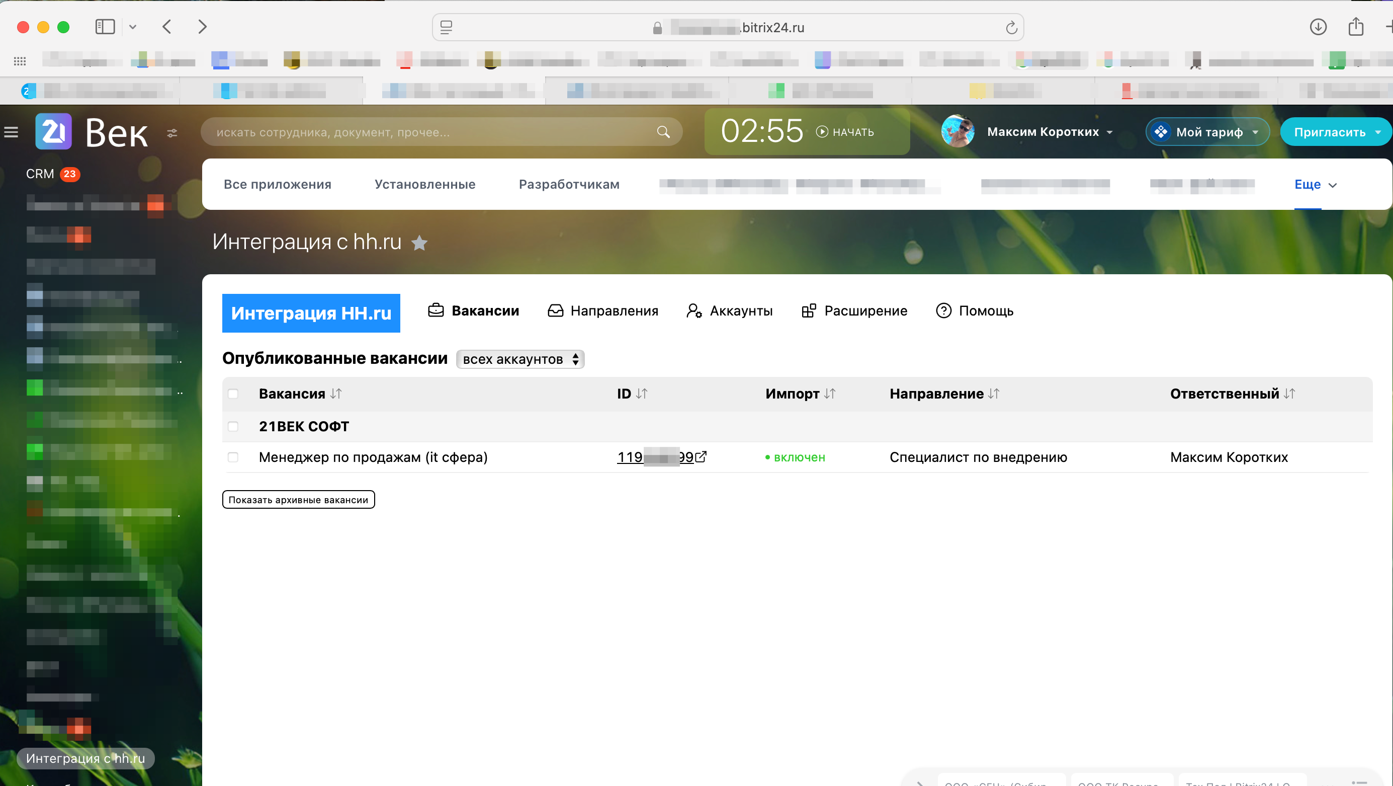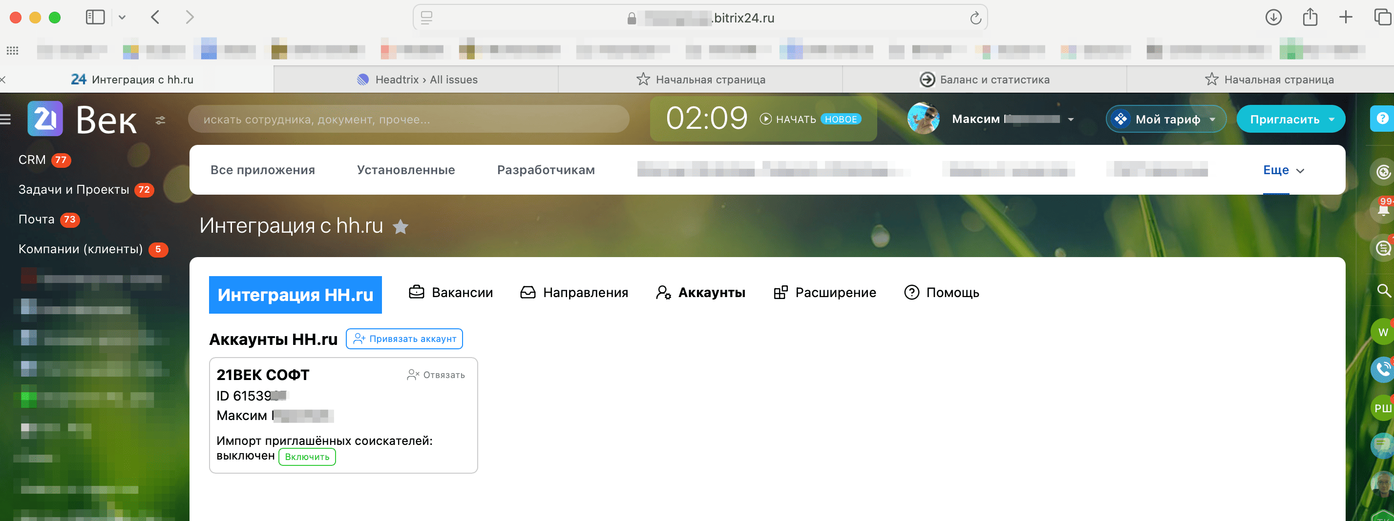 Интеграция с hh.ru (HeadHunter) (без доп. платежей)