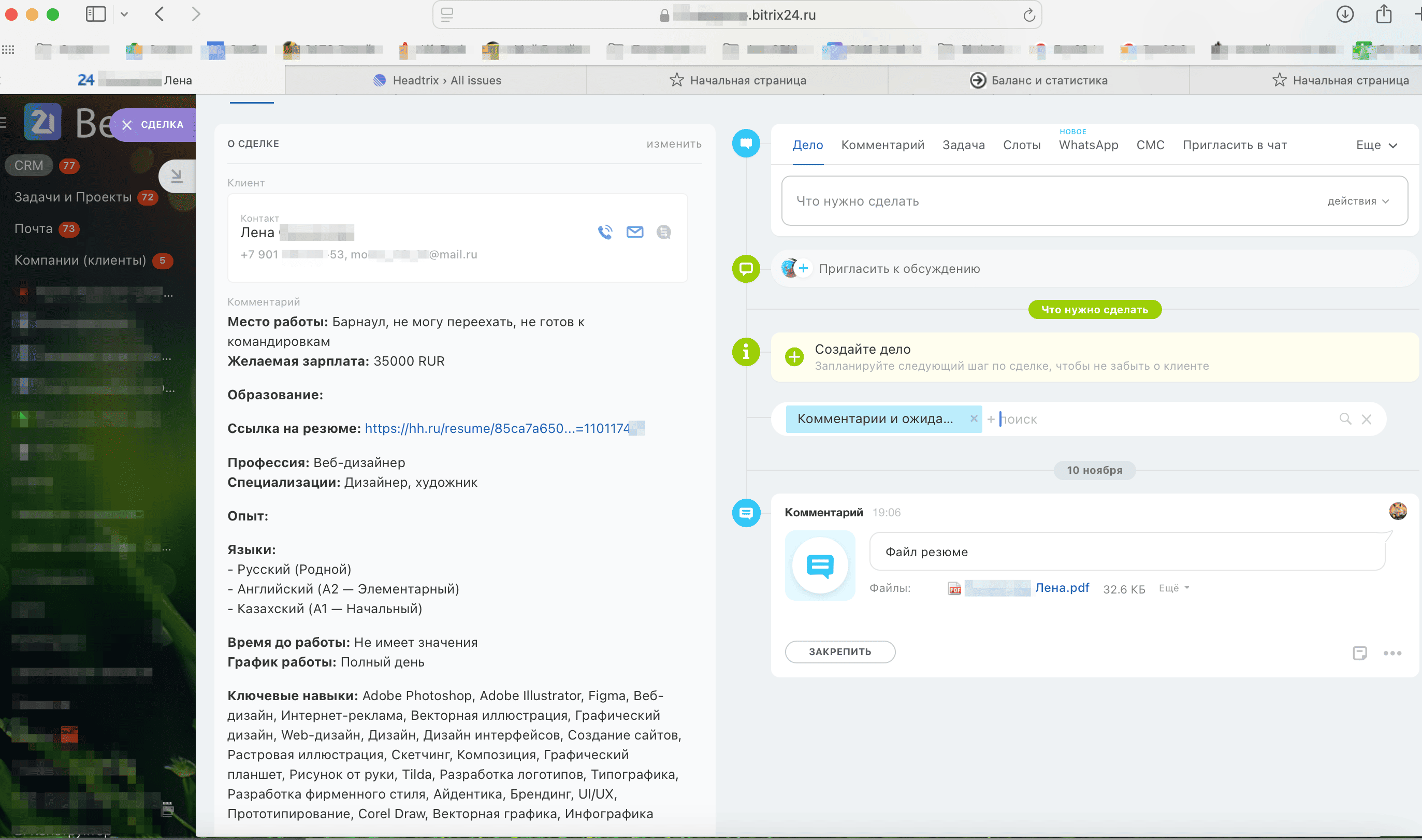 - Автоматическая синхронизация статусов отклика на hh.ru с этапами воронки в Битрикс 24 с помощью роботов и триггеров.