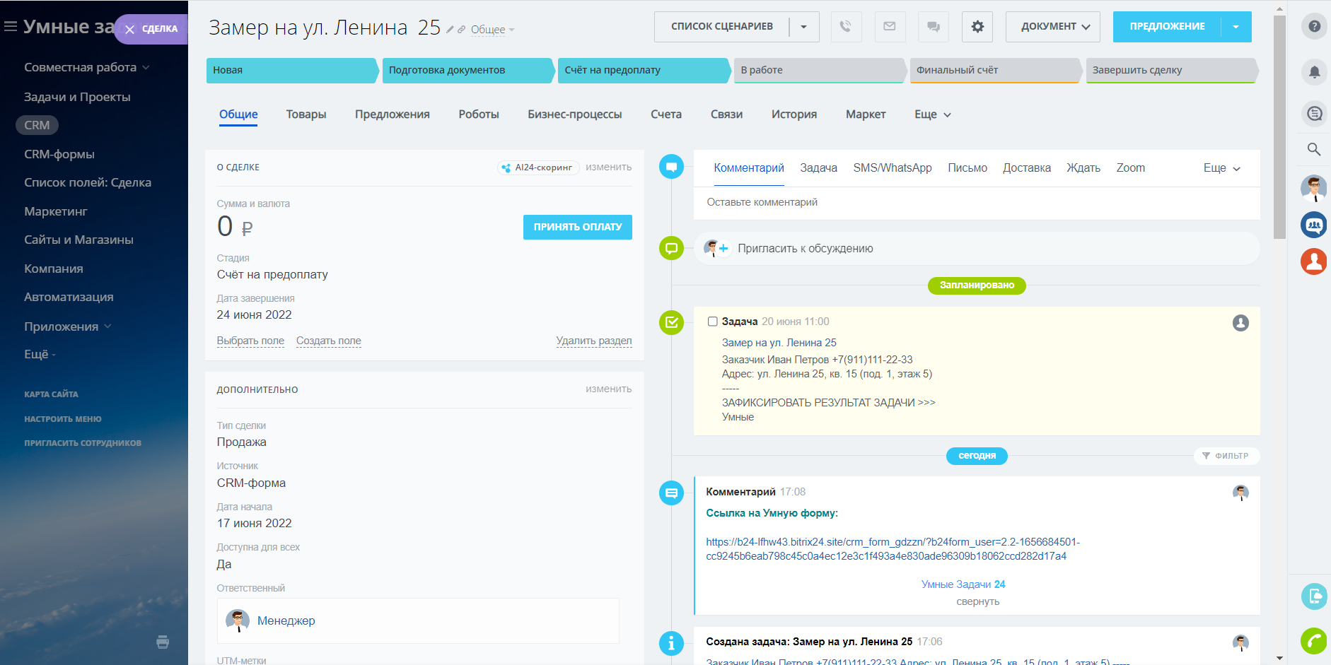 - ᐉ Ссылка на Умную форму - сценарий выводит в комментарий сделки ссылку на персональную форму Сделки.