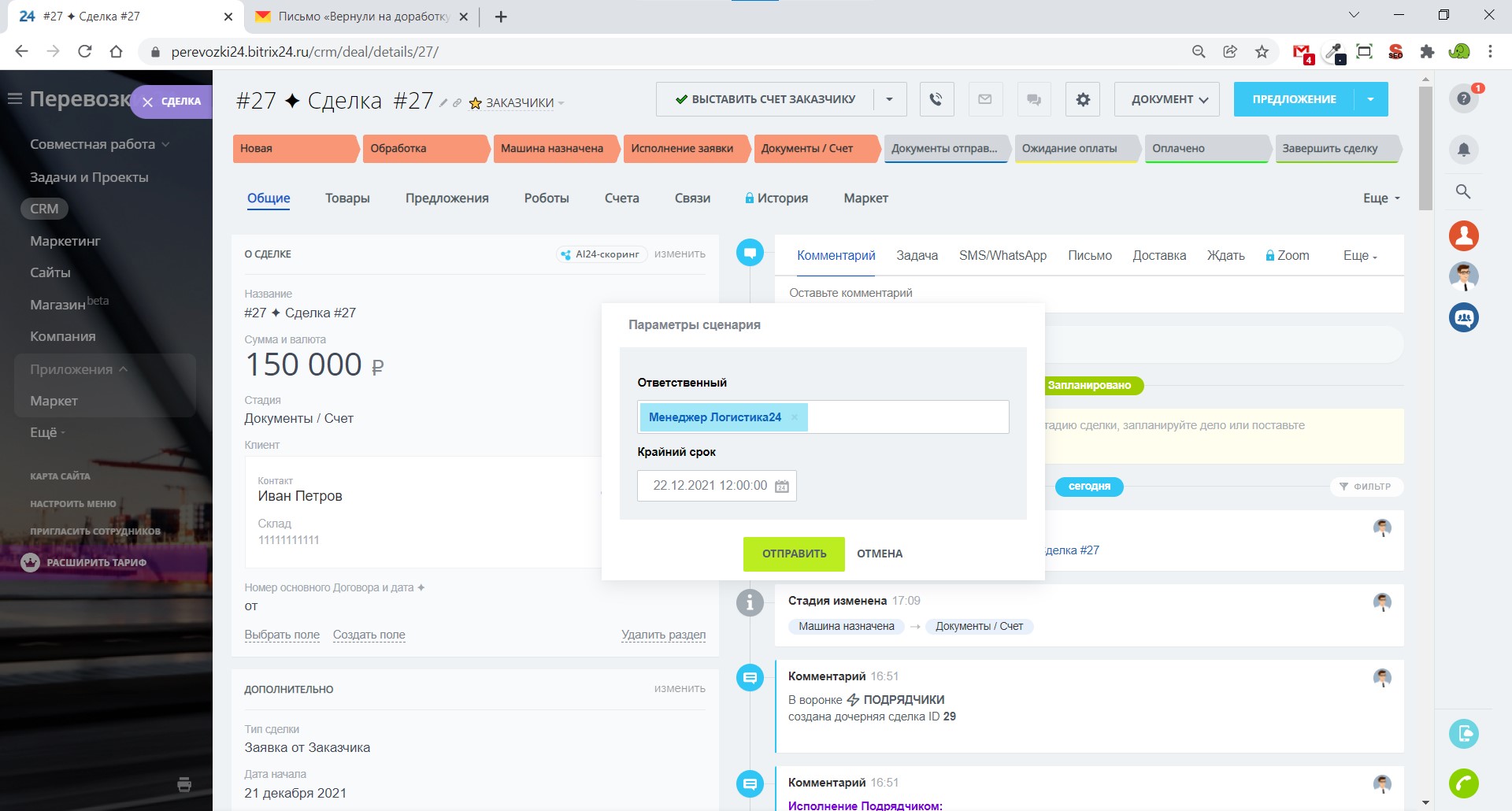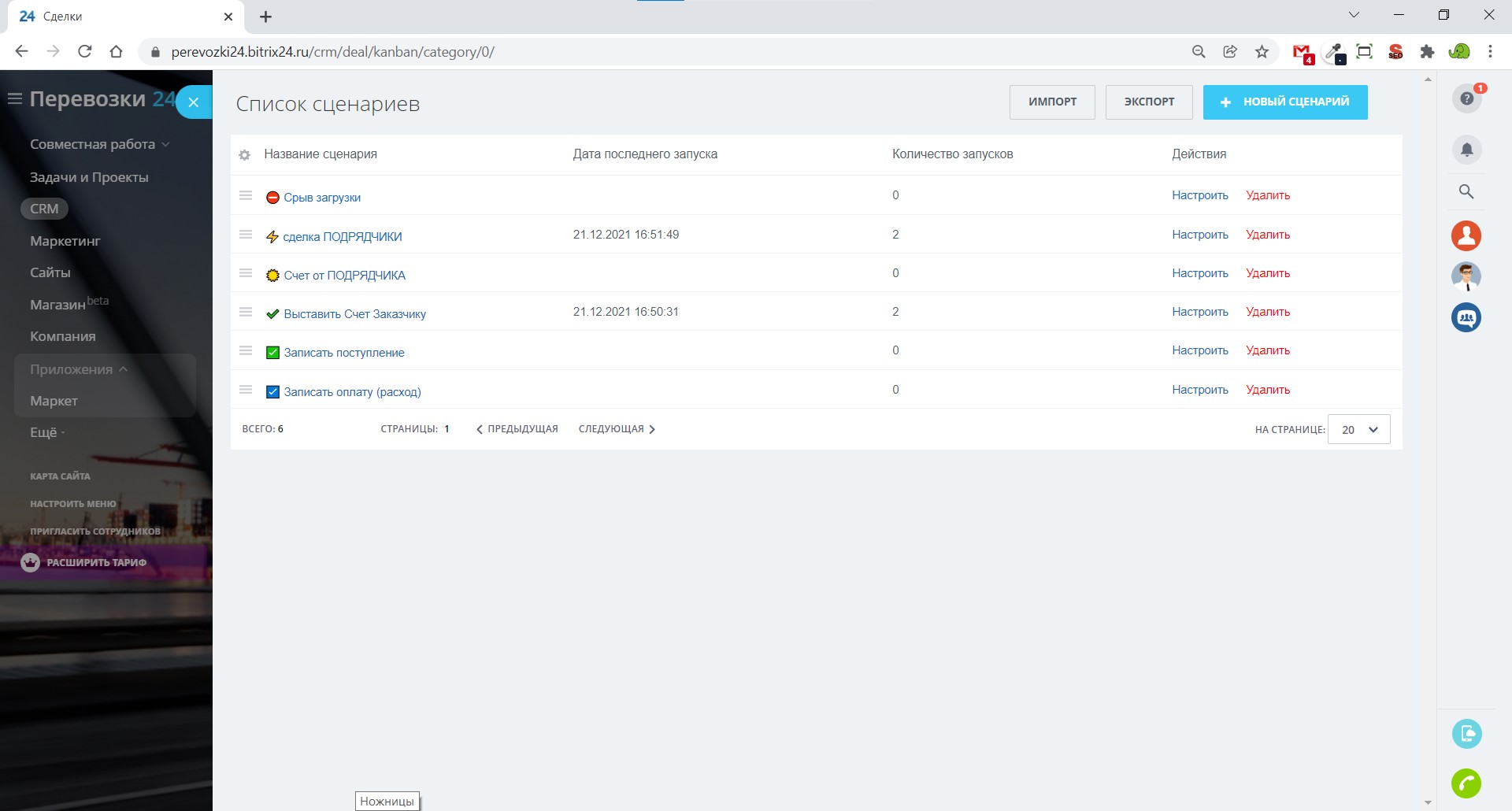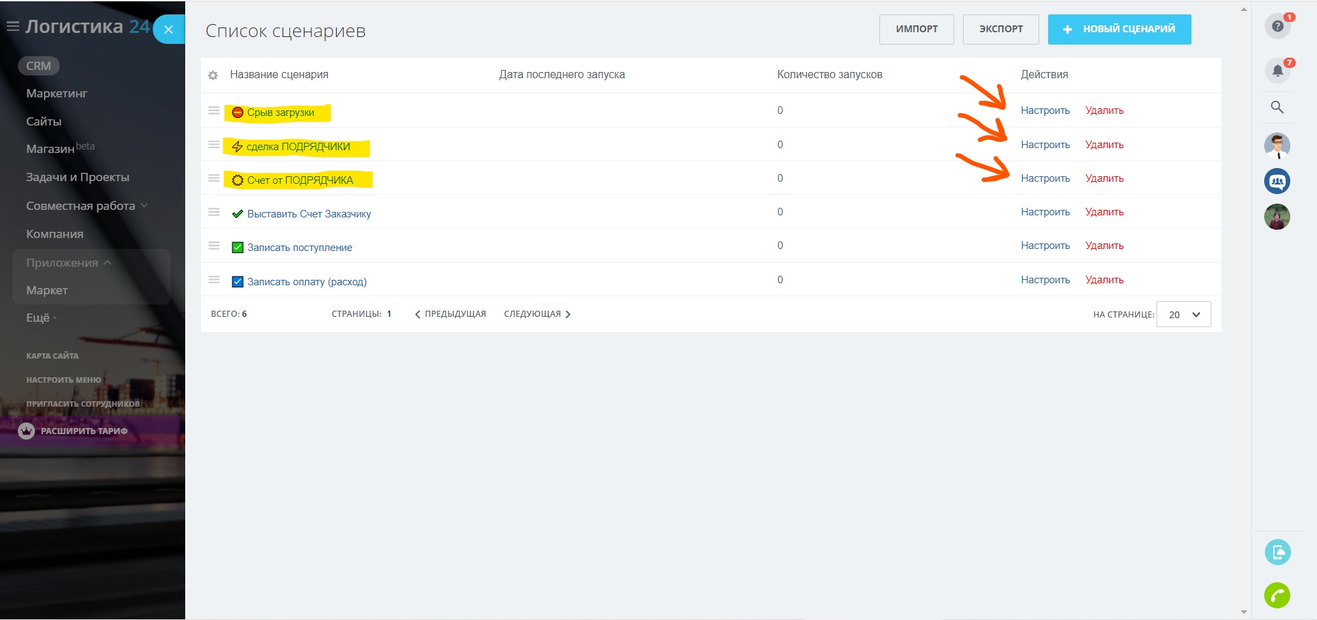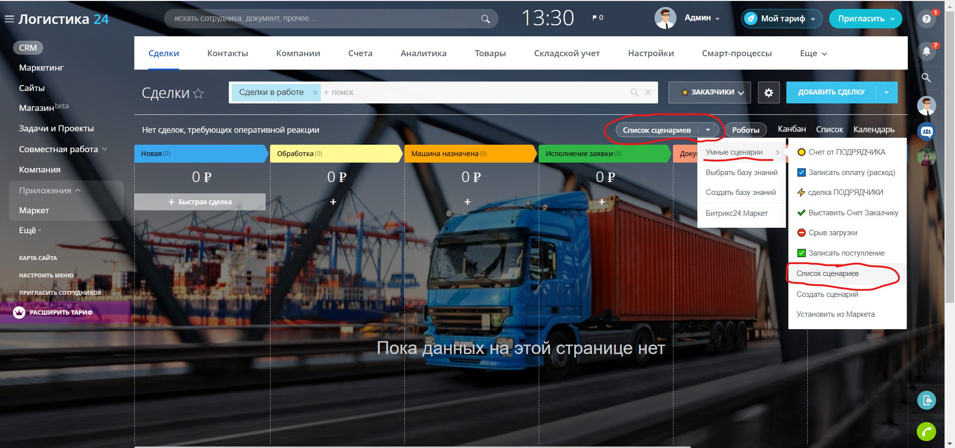 Умные сценарии для отраслевой CRM "Логистика24: CRM для грузоперевозок". Дополнение для автоматизации работы в CRM Логистика24. Работает только в установленной отраслевой CRM.
