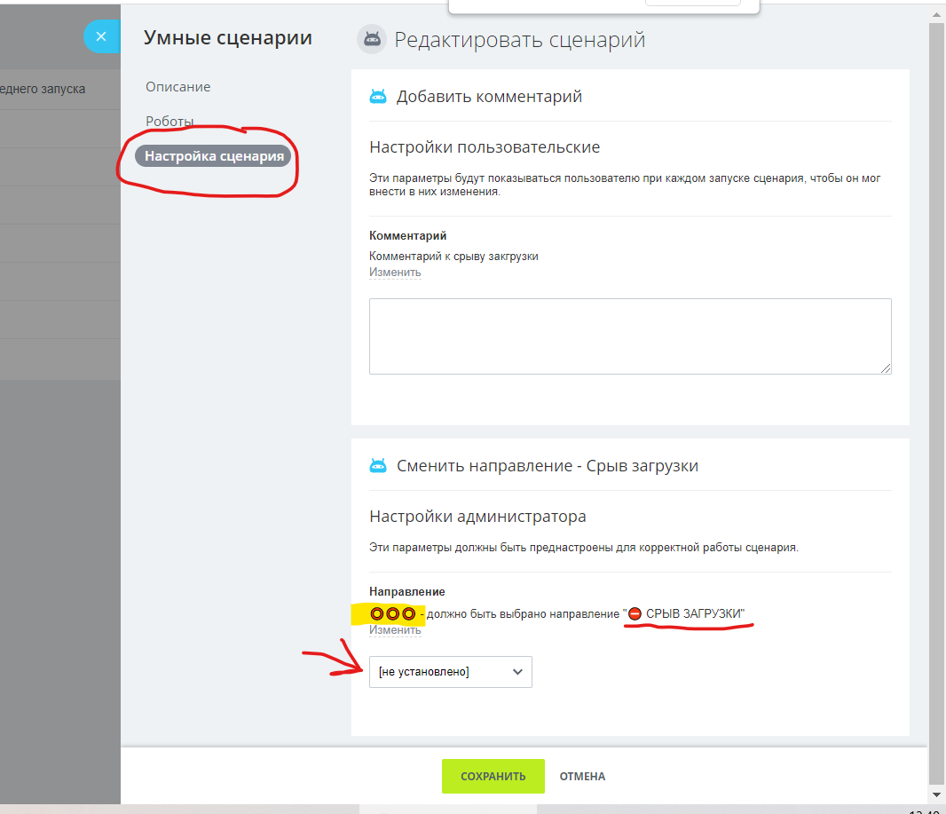- Срыв загрузки - перенос сделки в воронку "Срыв загрузки" при срыве на погрузке.