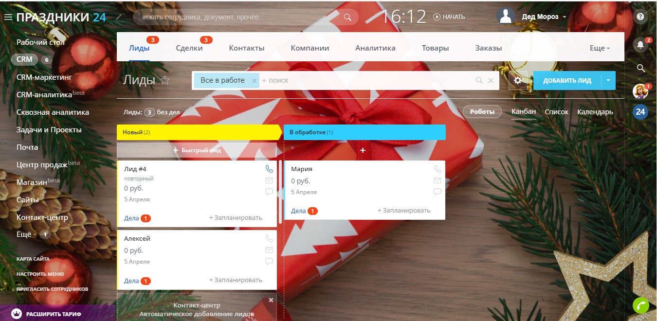 Для лидов и сделок будут автоматизированы регулярные процессы - напоминания, уведомления, создание группы для проектной работы по мероприятию и задачи, но только на тарифах Битрикс24 CRM+, Команда или Компания.