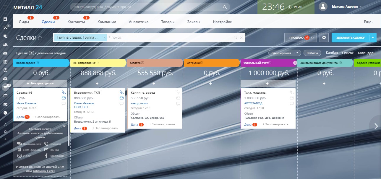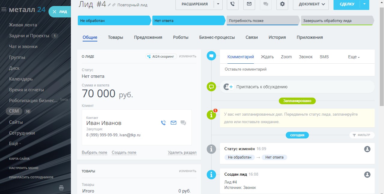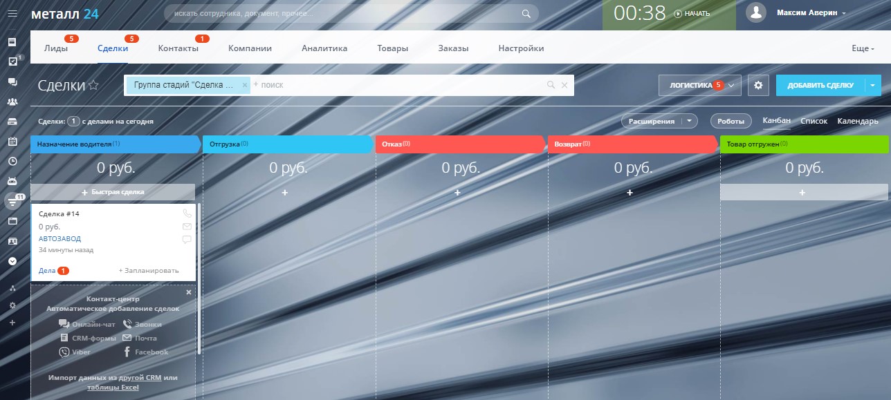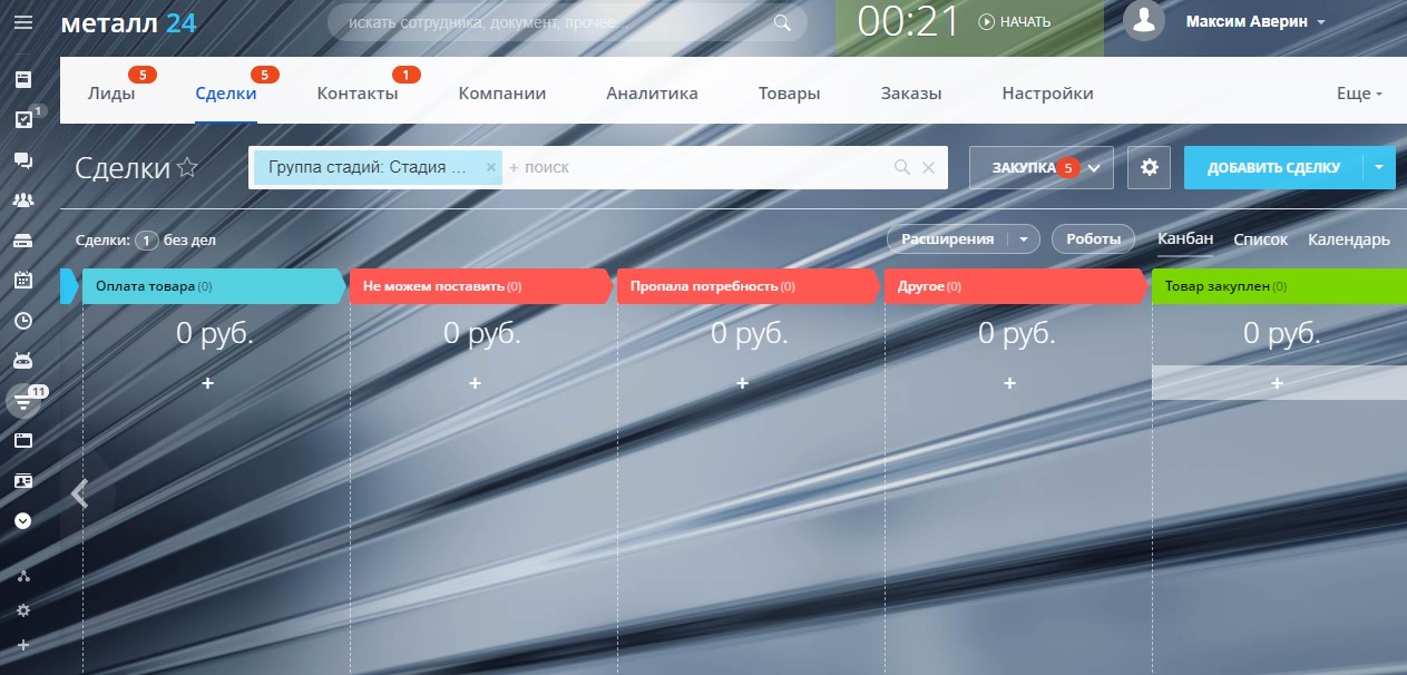 Готовая CRM- система для продажи металлопроката, а также закупки и доставки.