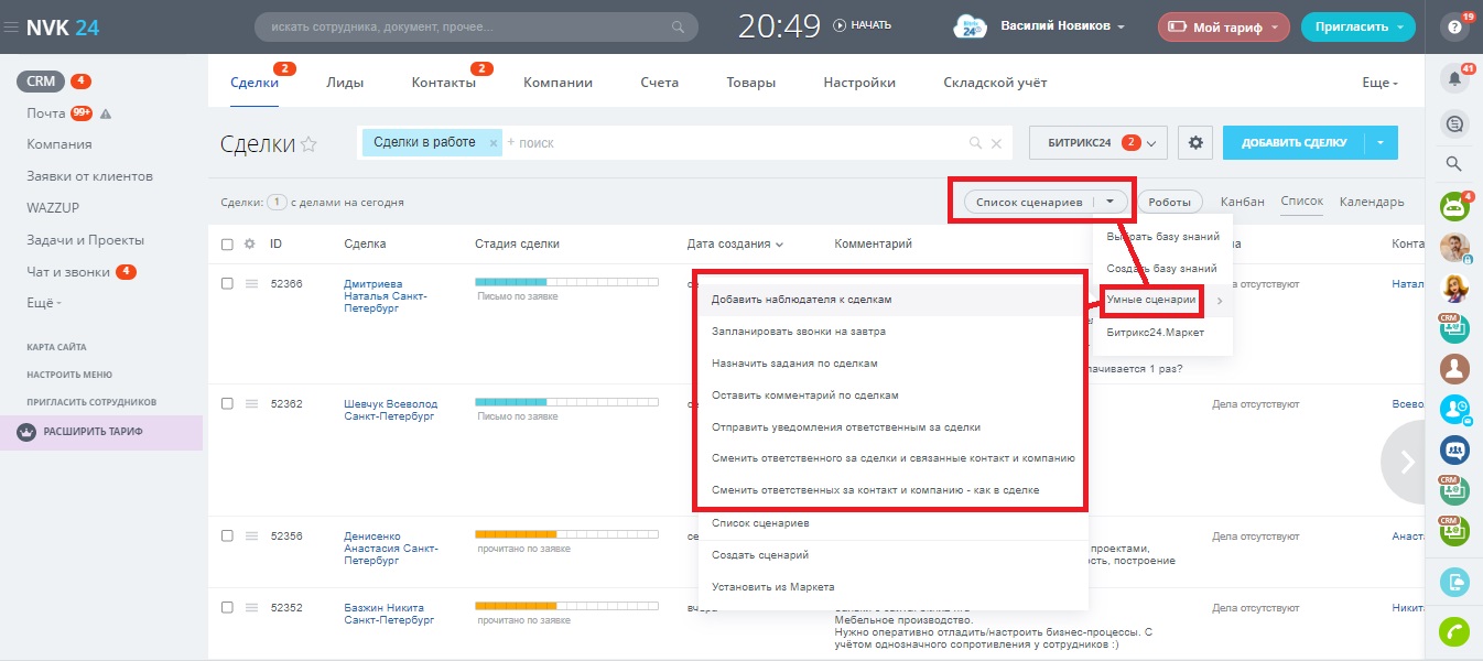 7 простых, но невероятно важных сценариев для массовой работы со сделками. Задания, комментарии, уведомления, планы на звонок.