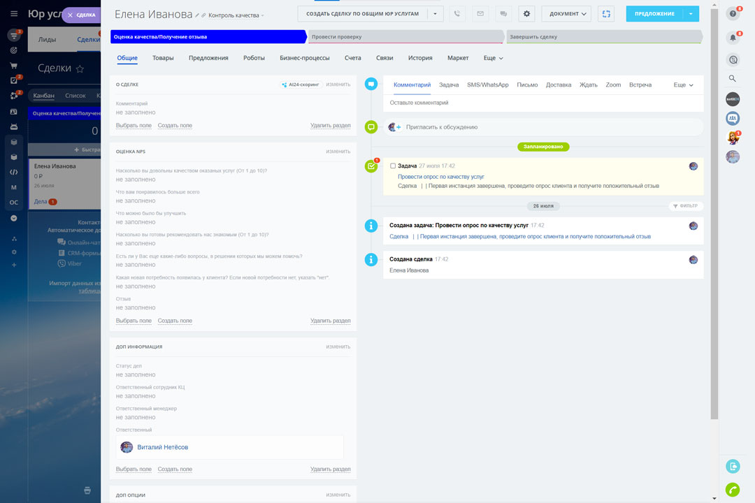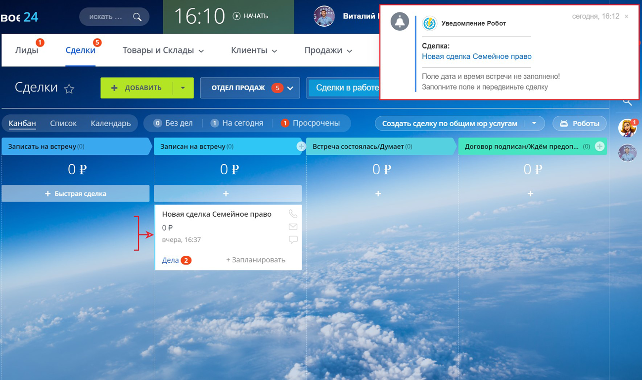 2. Сотрудник не забудет про клиента, т.к. для своевременной реакции сотрудников на обращения клиентов уже настроены автоматические уведомления и задачи от системы
