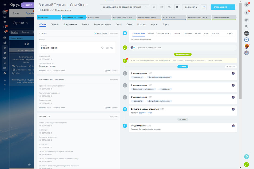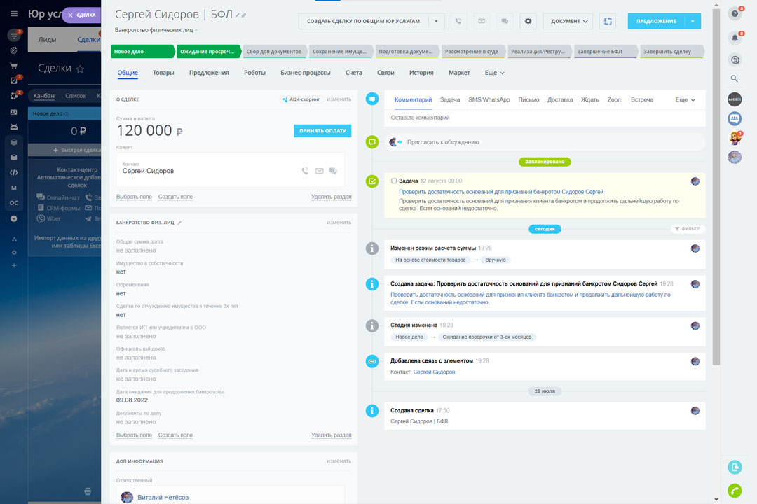 CRM для юридических компаний: общие юридические услуги и банкротство физических лиц