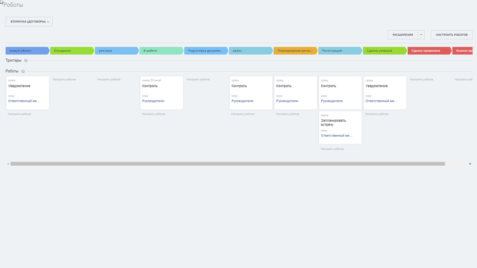 Направление ВТОРИЧКА (ДОГОВОРЫ) (воронка для работы на вторичном рынке, автоматизирован процесс уведомлений и контроля сотрудников компании):