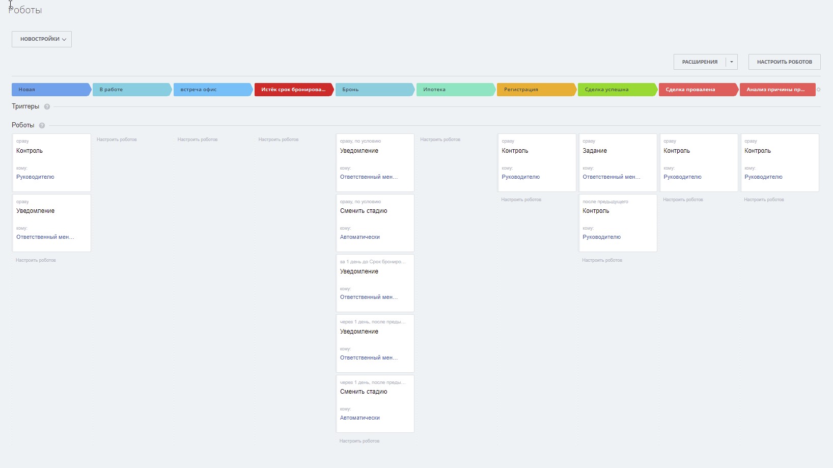 Направление НОВОСТРОЙКИ (воронка для работы по новостройкам города, автоматизирован процесс уведомлений и контроля сотрудников компании):
