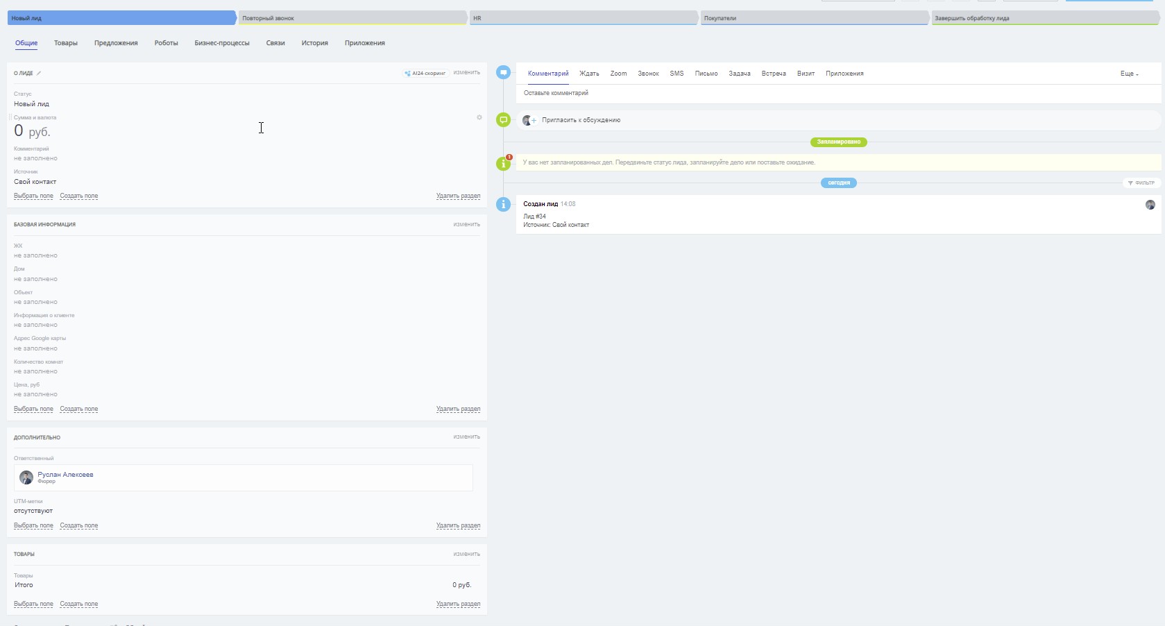 Наше CRM решение работает по классической схеме работы CRM, то есть все входящие попадают сначала в ЛИДы. И только потом, если ЛИД успешен, конвертируется в сделку и клиента.