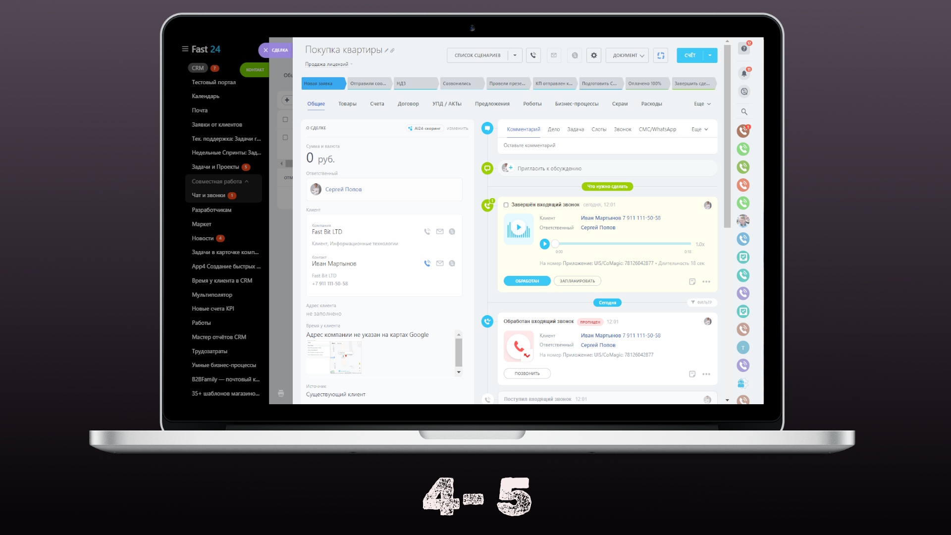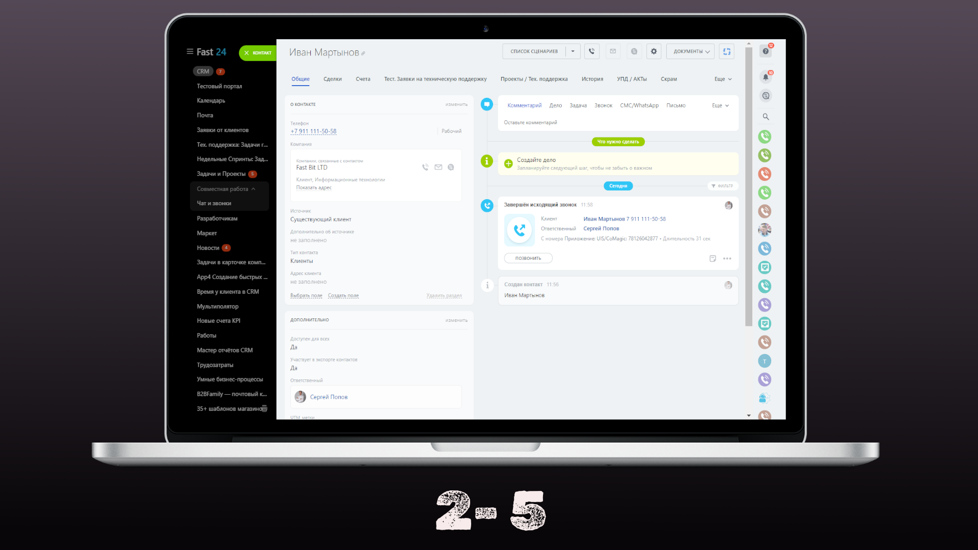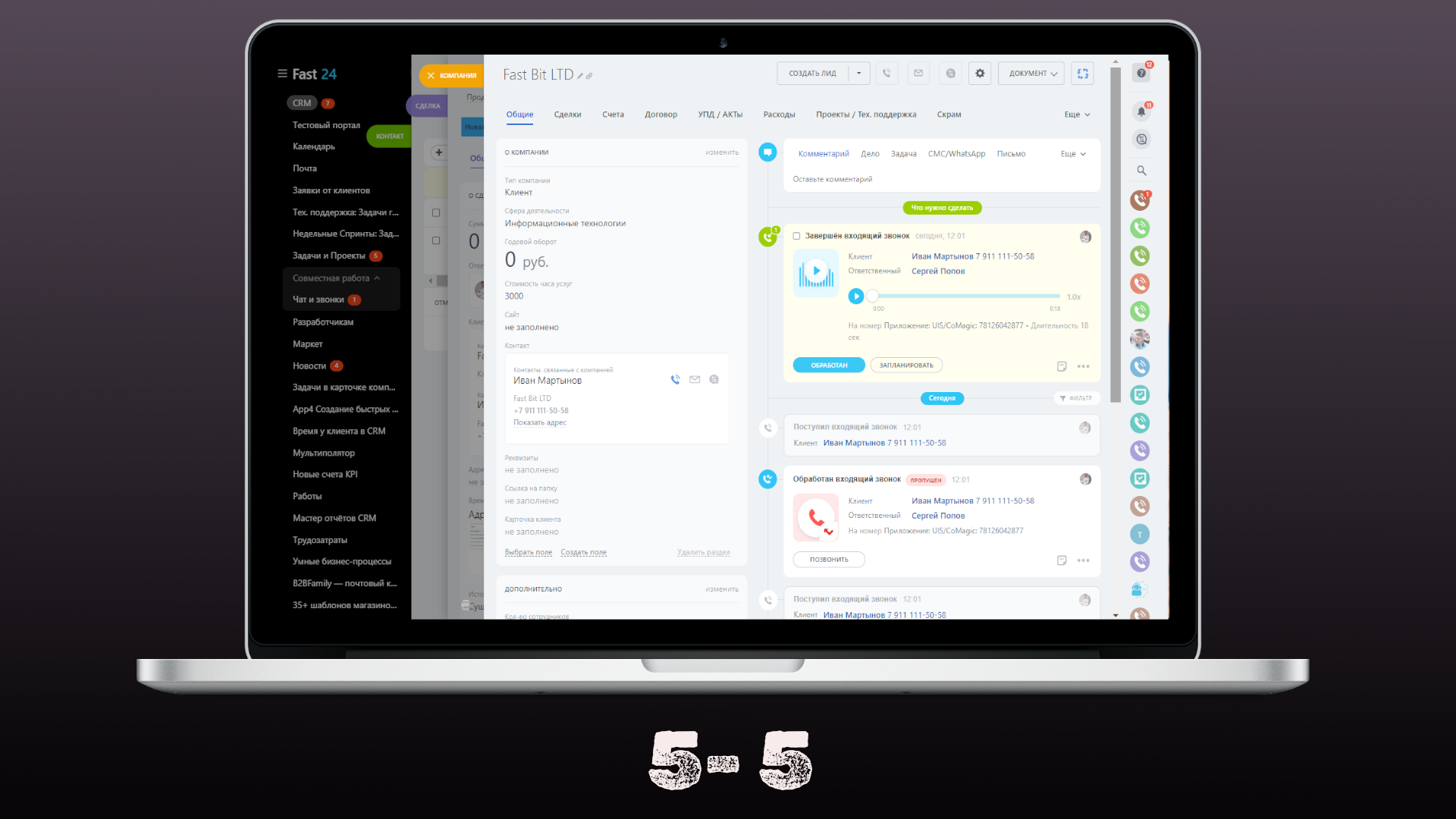 Вся информация о каждом звонке автоматически переносится и связывается с соответствующей Компанией в вашей системе. Это значит, что вы можете легко получать доступ ко всей коммуникации, связанной с определенной Компанией.