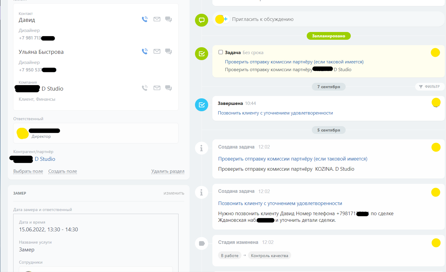 CRM для продаж и монтажа — всё от замера до SMS клиенту