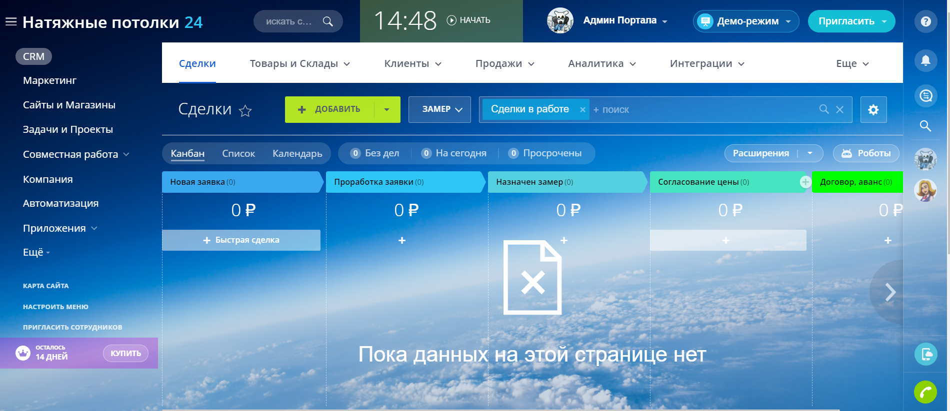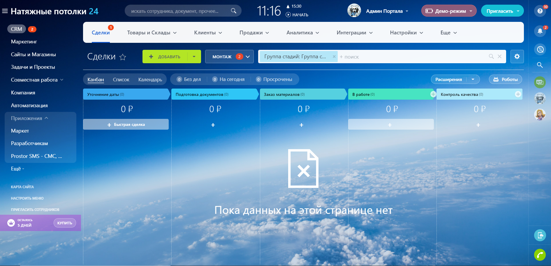 Мы взяли за основу самые удачные и эффективные кейсы из бизнеса «установка натяжных потолков» и применили их в нашей CRM, чтобы вы могли использовать с первой минуты лучший опыт ваших конкурентов.