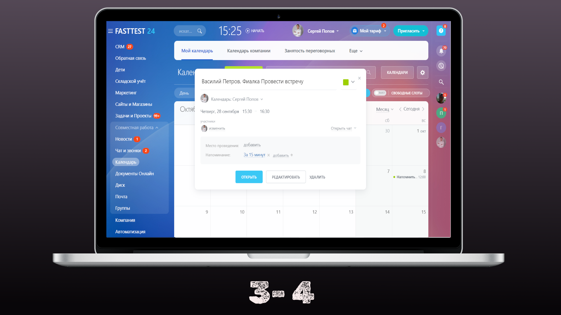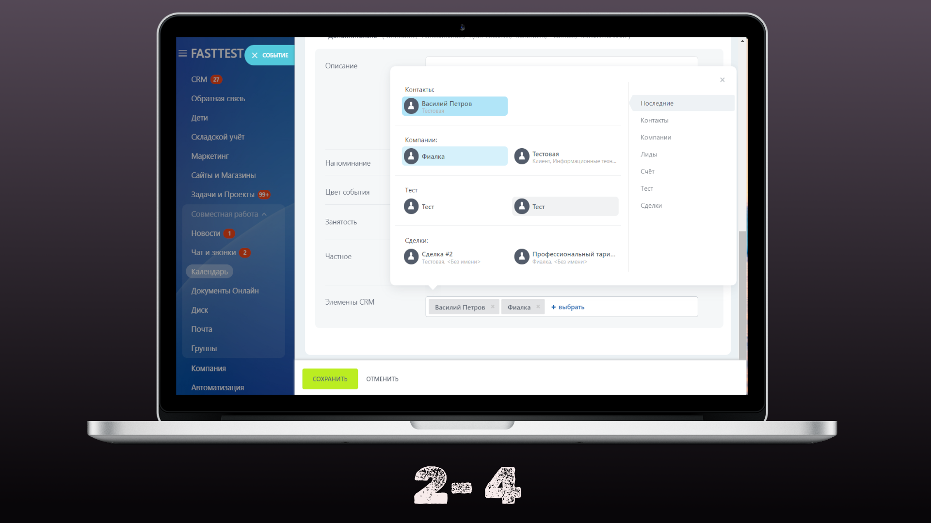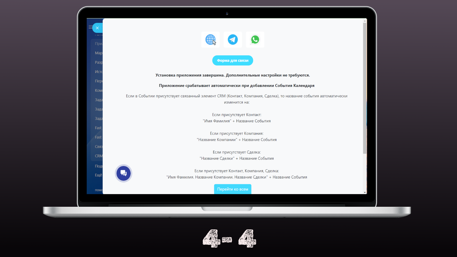 Автоматическое обновление названия события: Затем приложение автоматически обновляет название события, вставляя информацию о связанной CRM сущности. Например, если у вас есть событие "Встреча с клиентом" и оно связано с контактом "Иван Иванов", приложение автоматически изменит название события на "Иван Иванов. Встреча с клиентом".