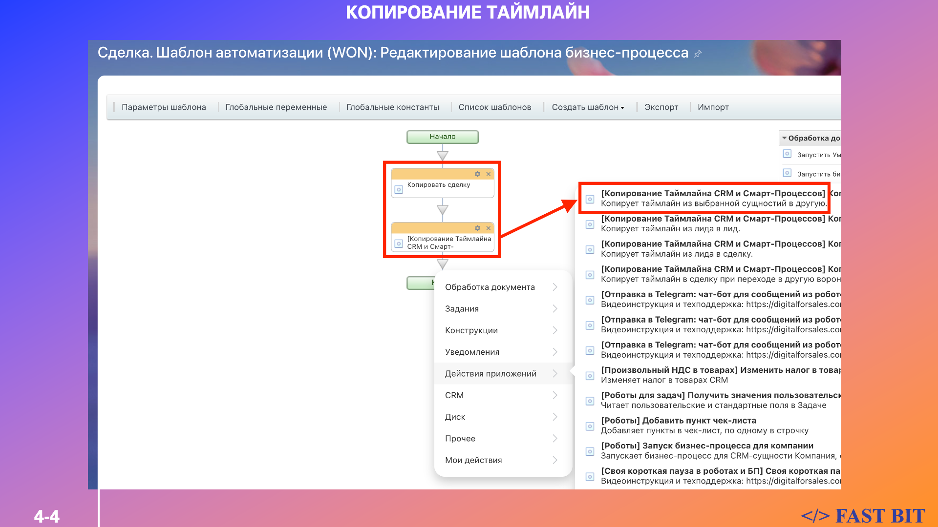 Копирование Таймлайн из элементов CRM и Смарт-Процессов.