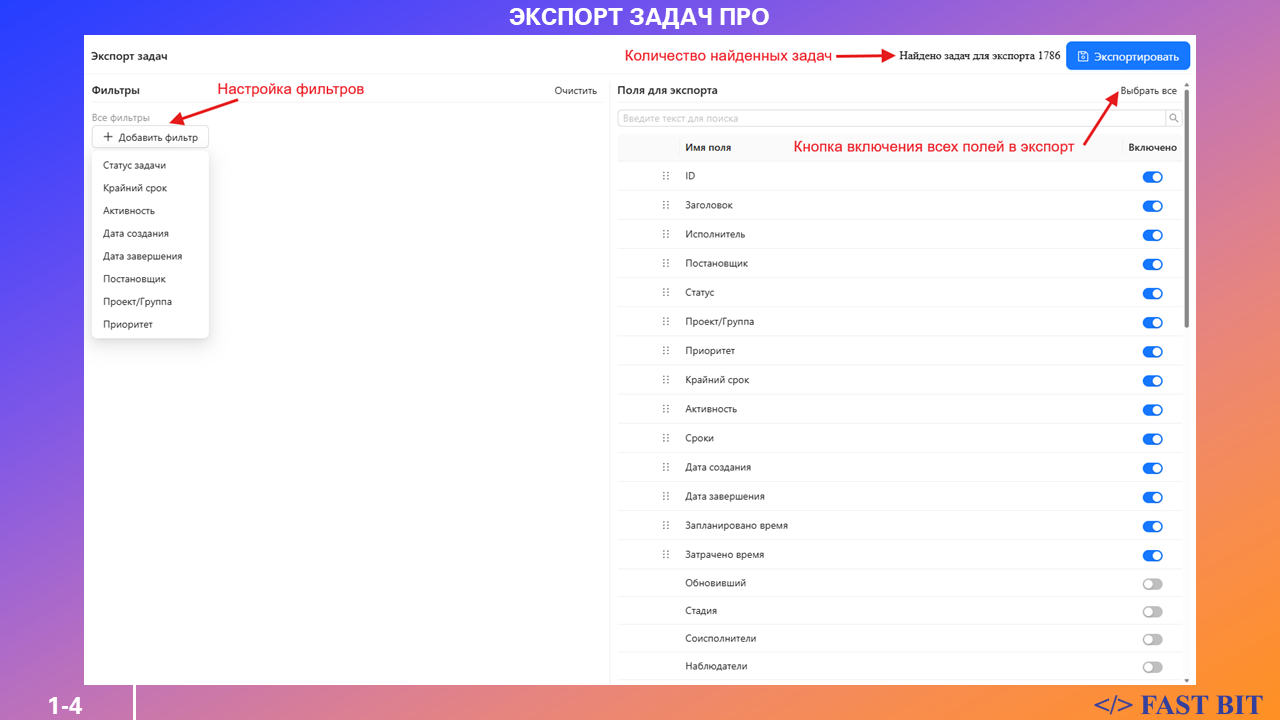Экспорт задач ПРО — это мощный инструмент для точной и гибкой выгрузки задач из Битрикс24.