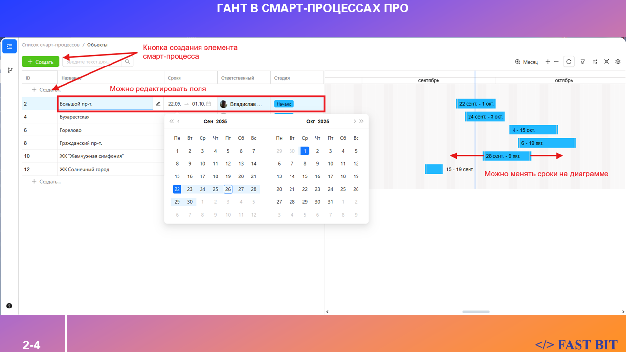 Упростите контроль, улучшите планирование — начните использовать Гант в Смарт-Процессах ПРО уже сегодня!