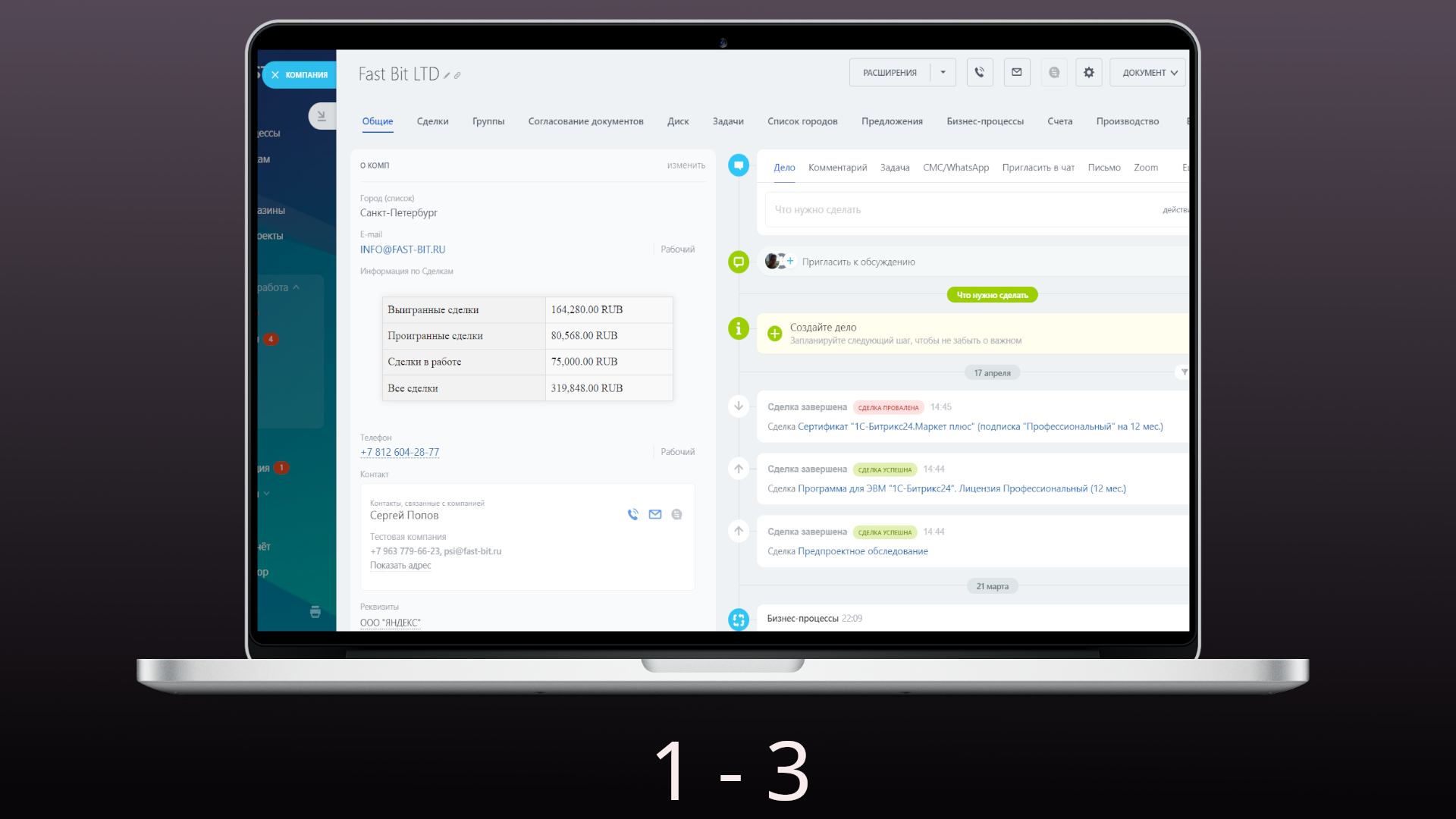 1. Быстрый доступ к информации: Получайте всю необходимую информацию прямо из карточки компании или контакта, без лишних телодвижений.