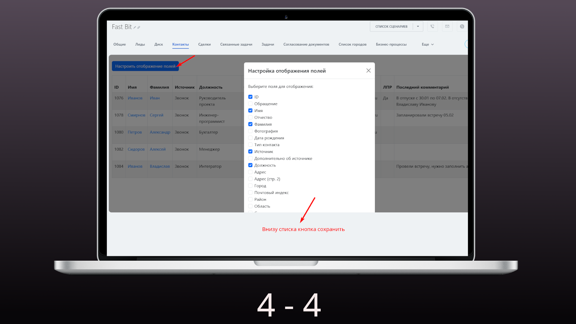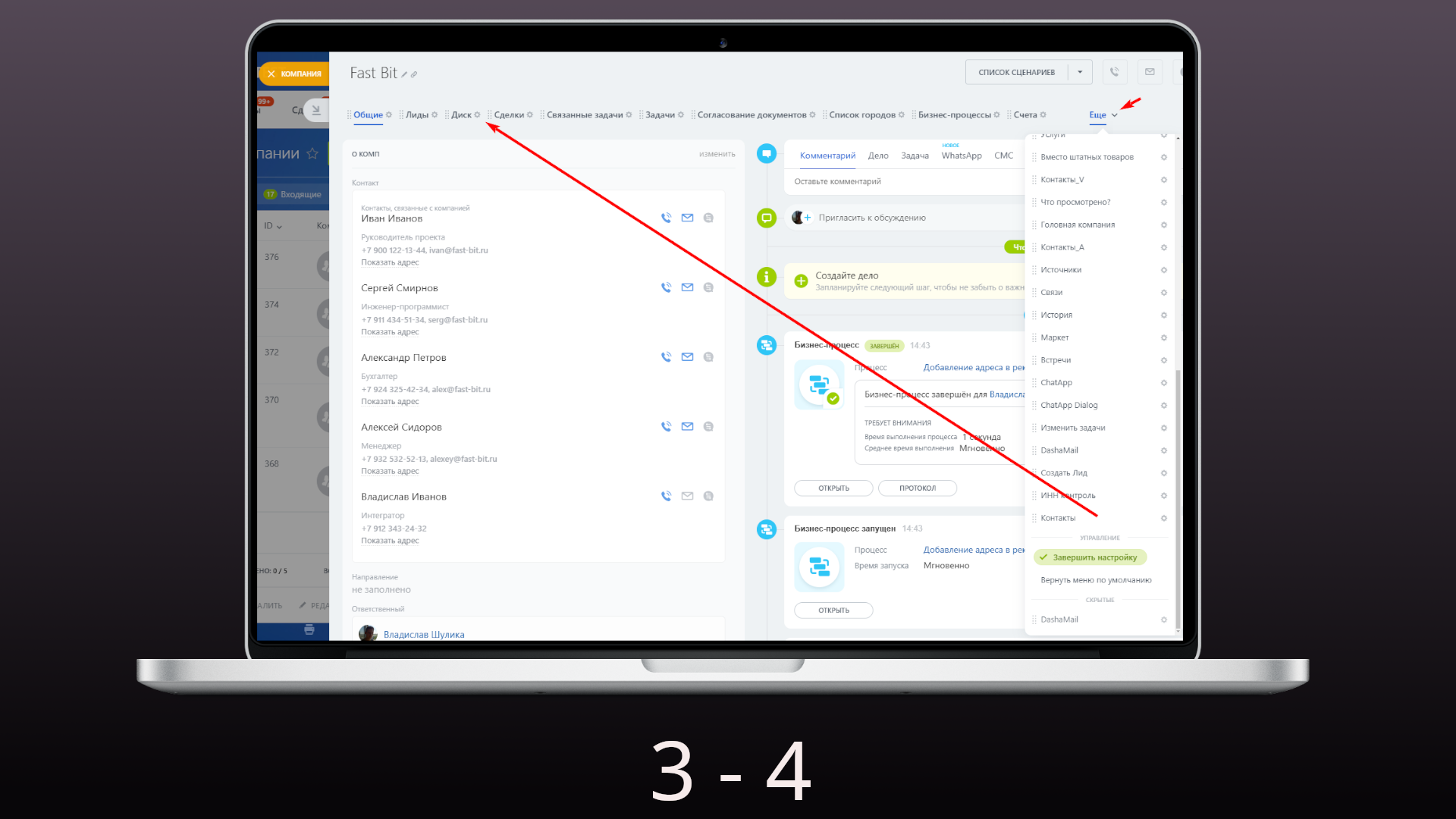 В поле Контакты можно увидеть только ограниченный набор данных. Контакты в Компании решает эту проблему, добавляя вкладку с настраиваемой таблицей всех контактов компании. Отображайте нужные поля: должность, статус, категорию, тип, дату последней активности, комментарии (с поддержкой "Комментатор 2.0") и многое другое.