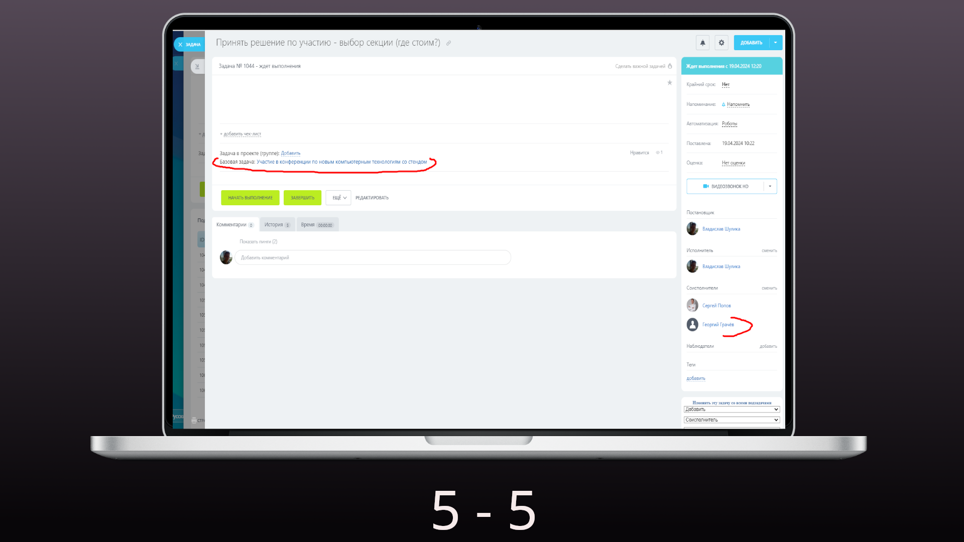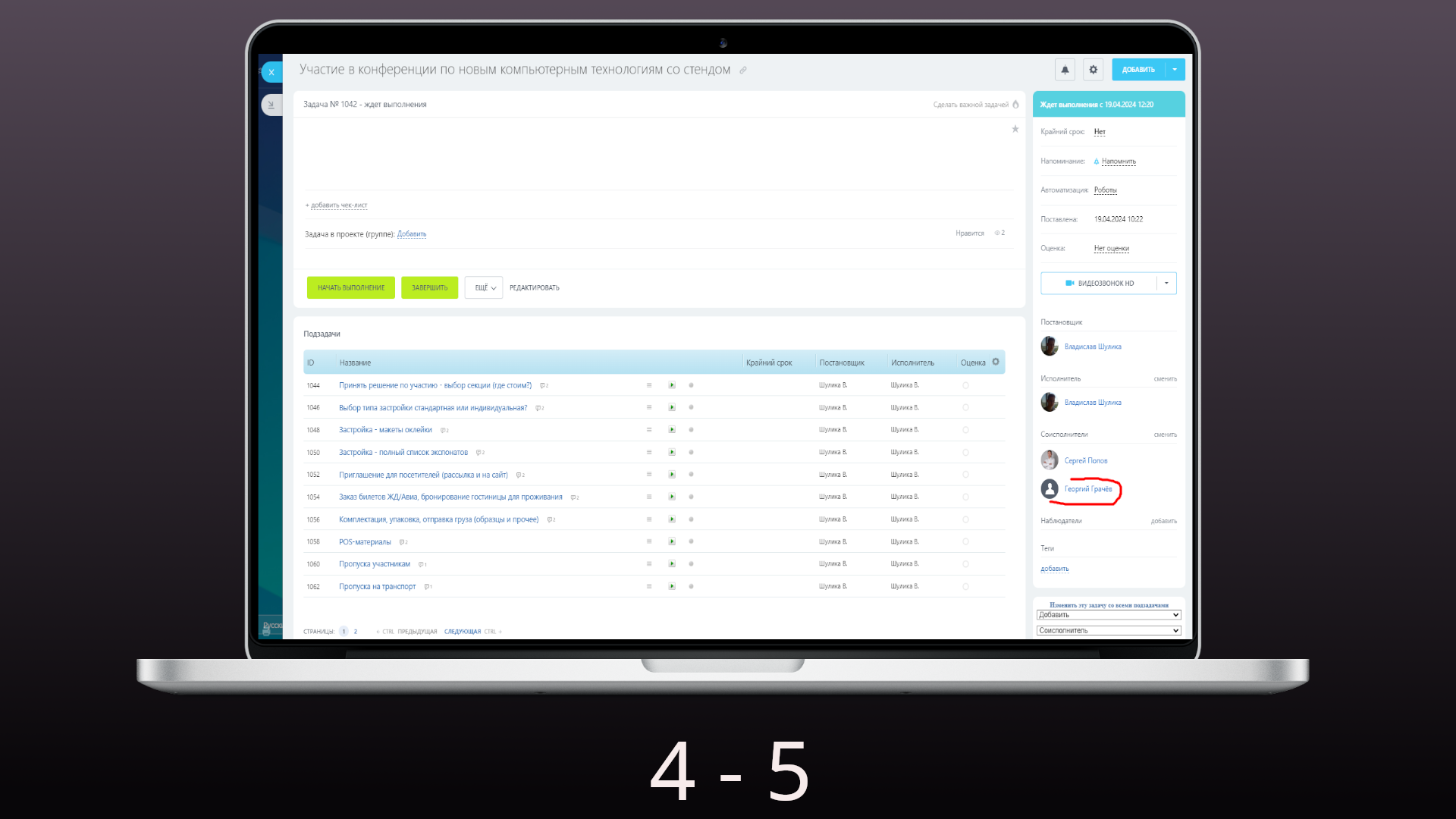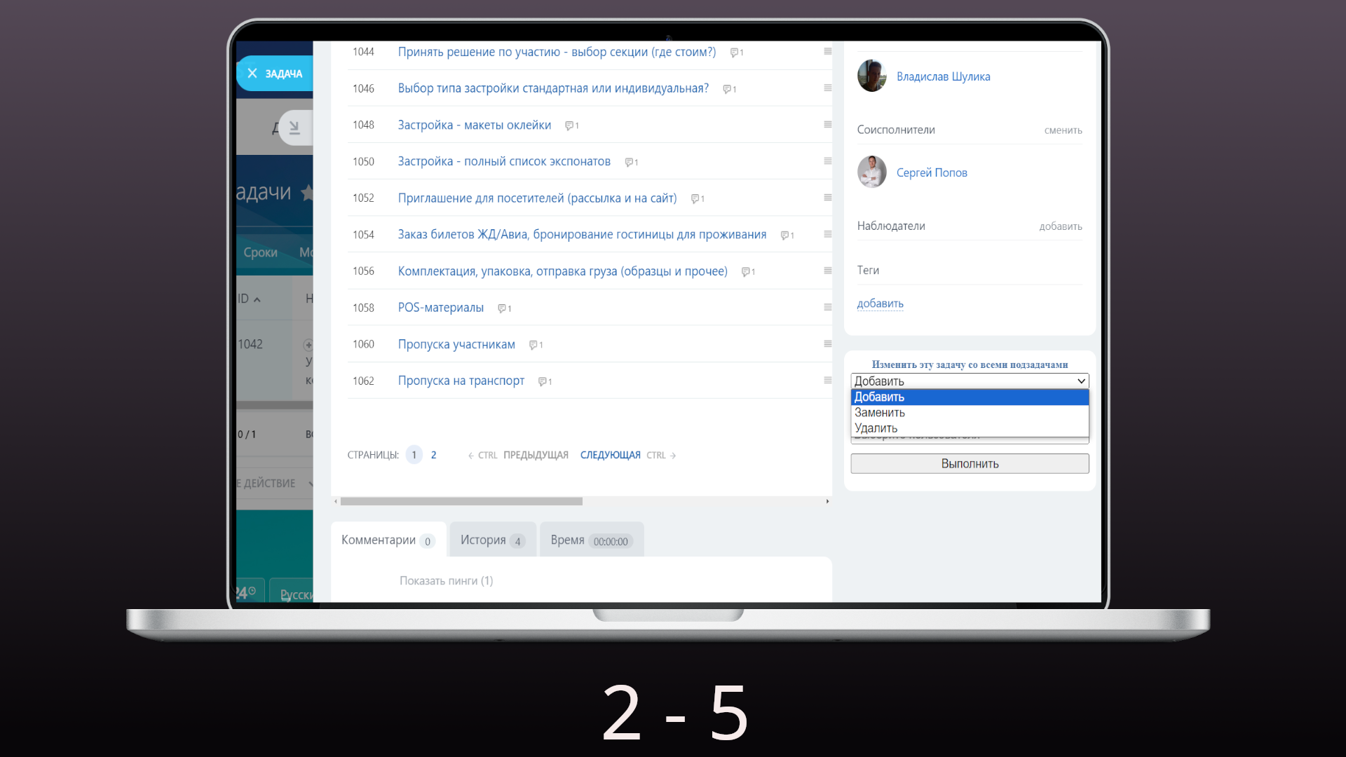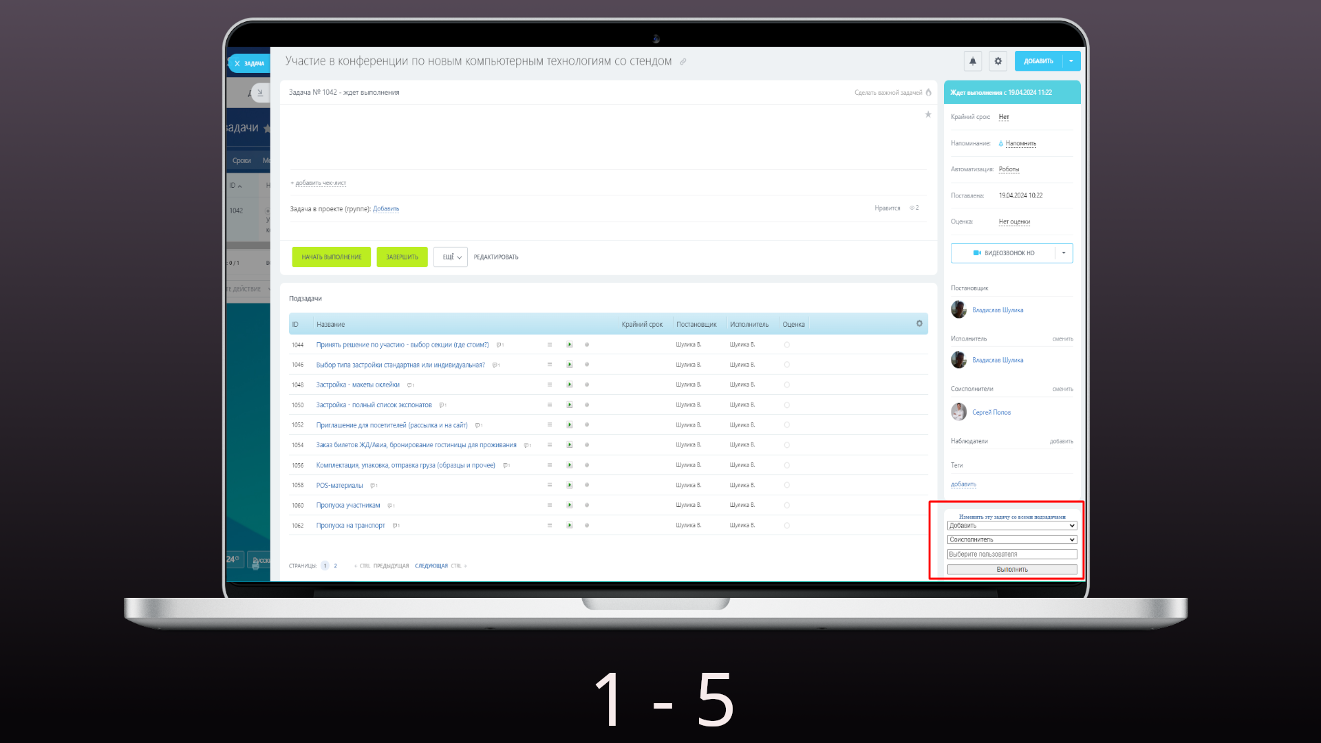 Управление задачами. Смена, добавление, удаление участников в базовой задаче и подзадачах