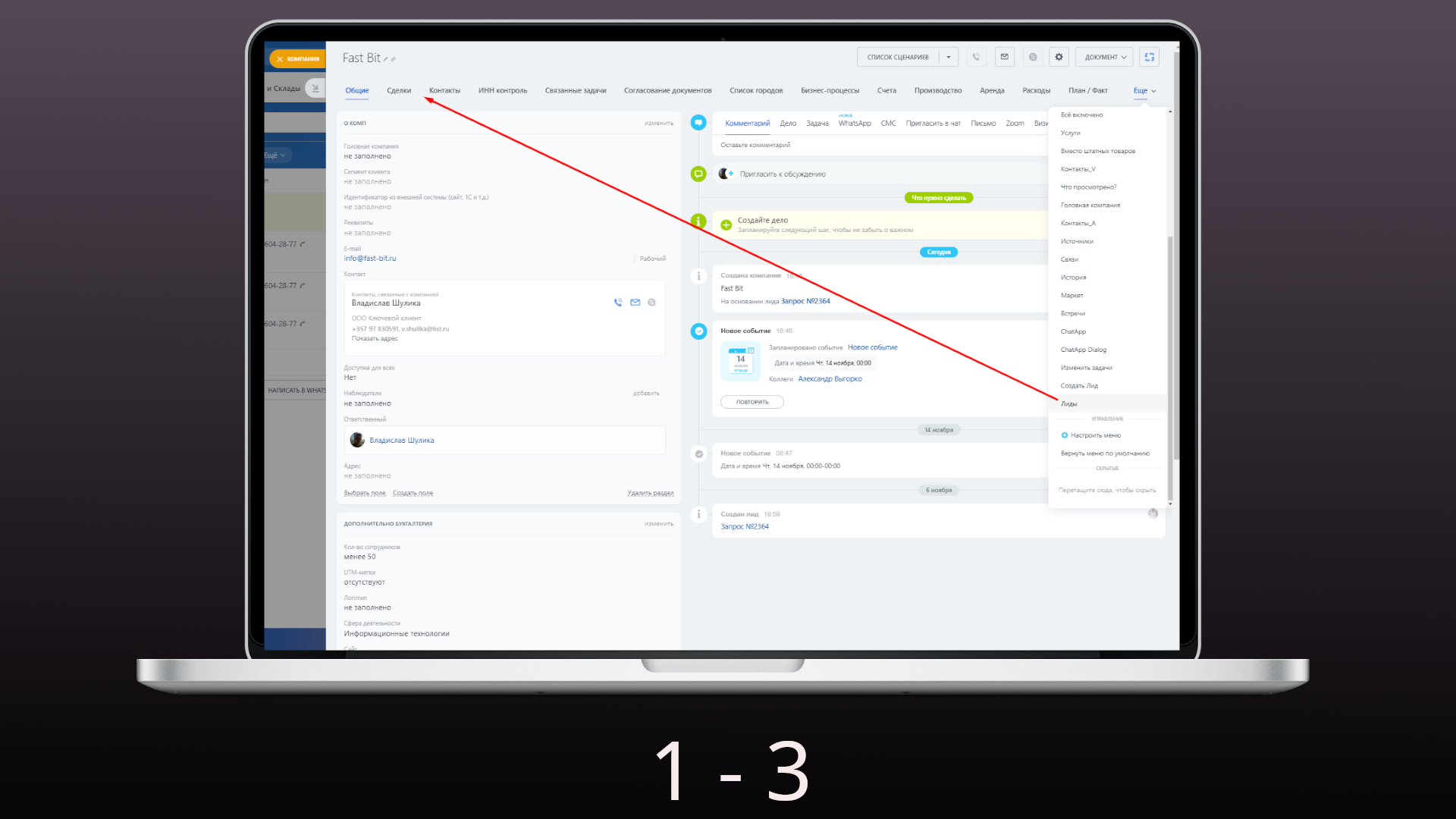 Наше приложение автоматически добавляет отдельную вкладку "Лиды" в карточки Контактов и Компаний, где отображаются все связанные обращения. Это решение позволяет быстро и удобно находить связанные Лиды, без необходимости искать их вручную.