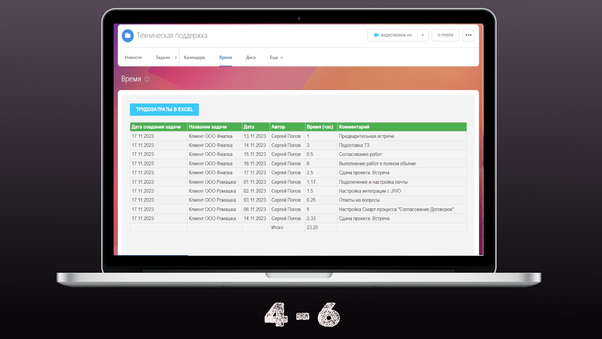 Для решения данной задачи мы придумали приложение, которое изначально готовили для себя, так как мы тоже ведем трудозатраты по проекту в группе, оно позволяет просмотреть все трудозатраты, которые на данный момент есть в группе, а также подготовить и скачать Excel-файл с данными, чтобы отправить его клиенту для согласования.