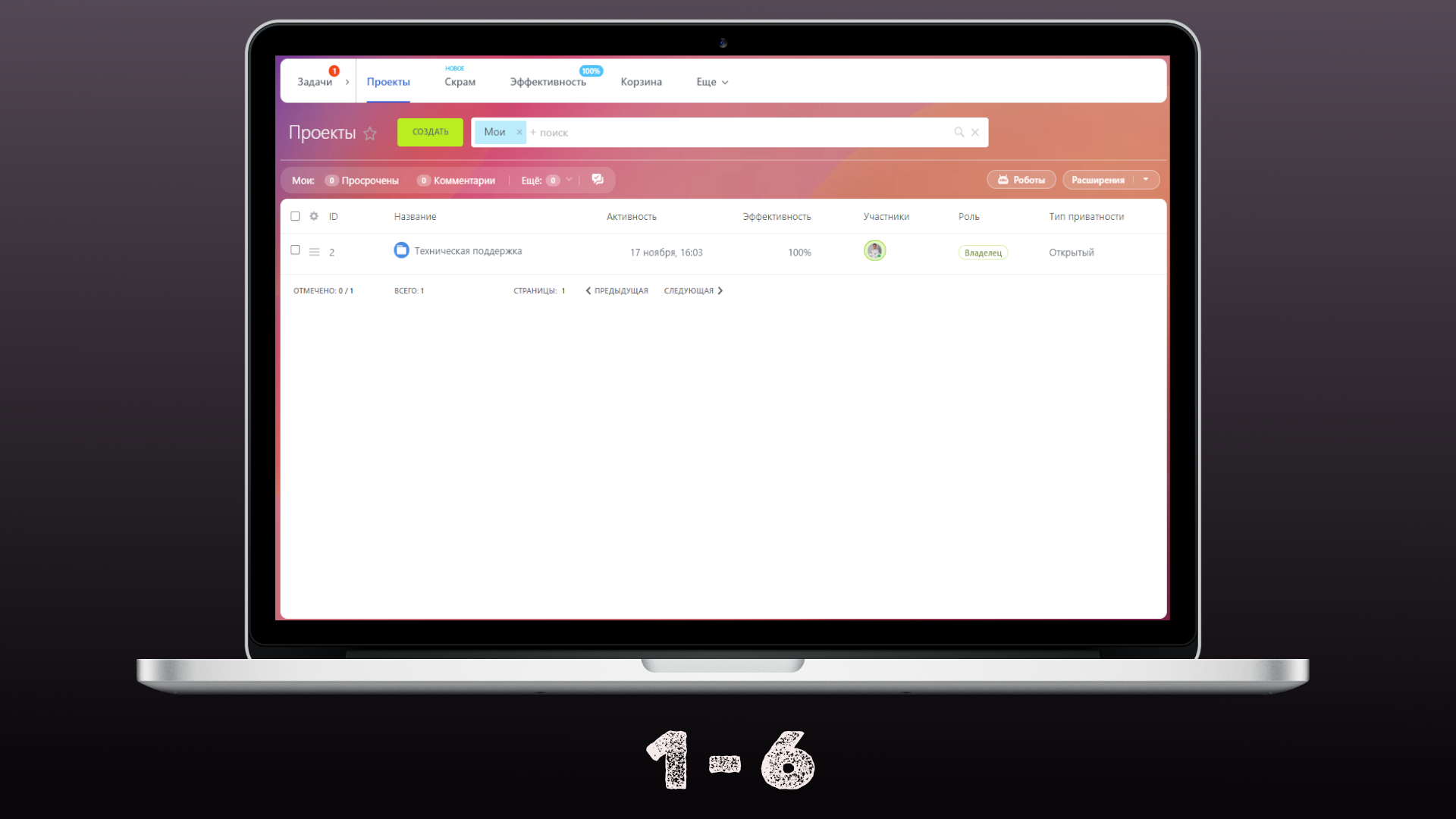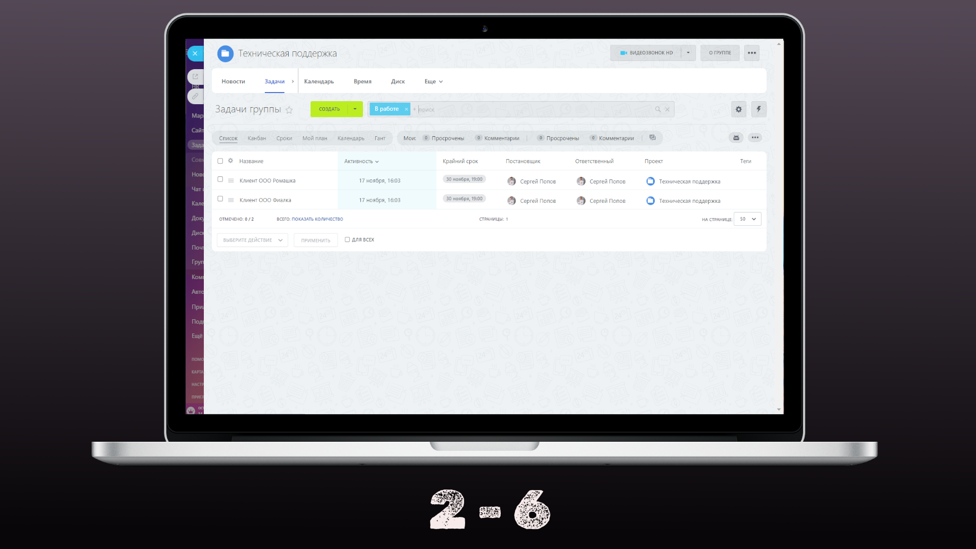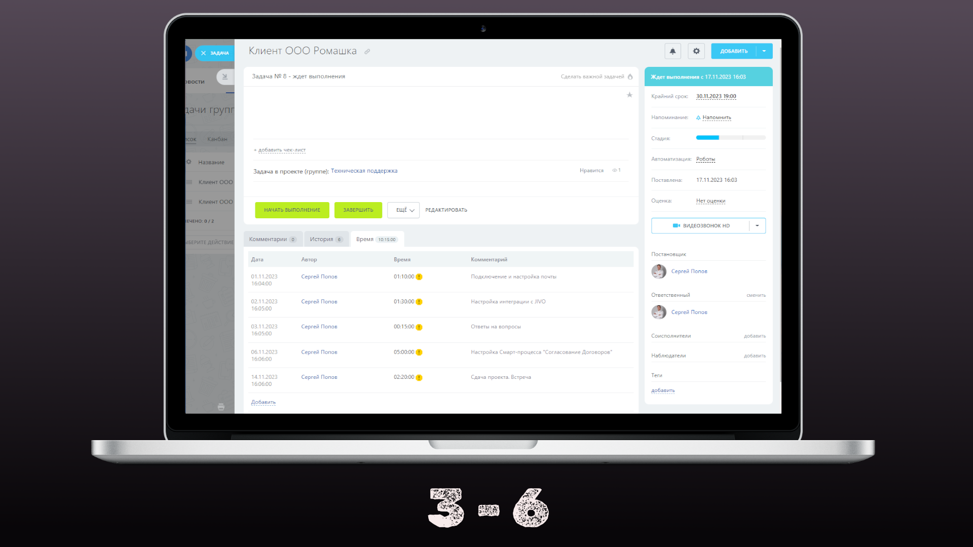В карточке Группы или Проекта появляется новая вкладка "Время" с таблицей, которая включает в себя все трудозатраты по всем Задачам.