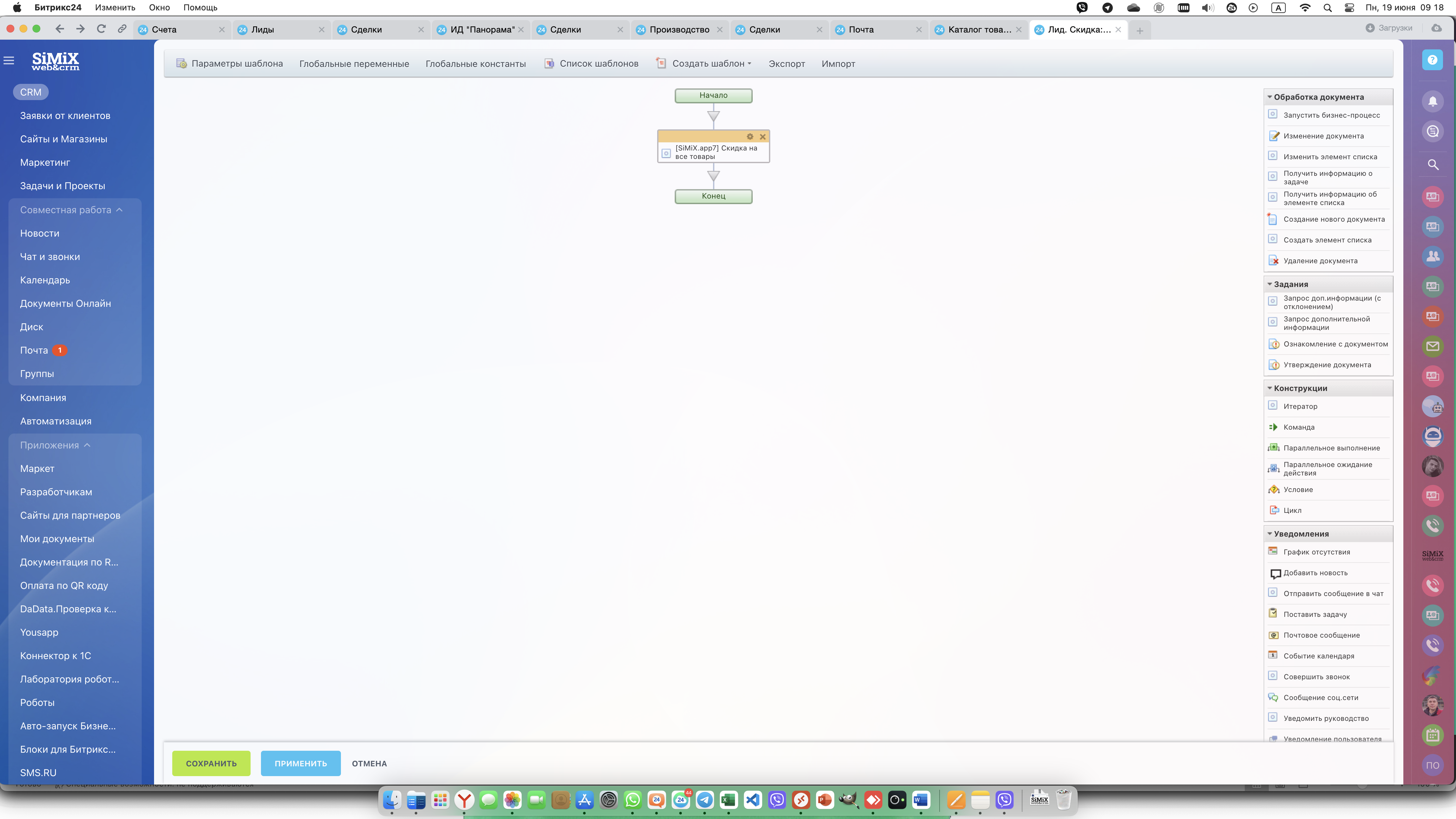 Активити добавляет возможность применения групповой скидки на все товары в лиде, сделке, предложении и т.д.