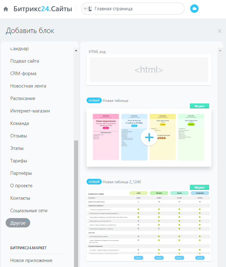 2. Сохранение созданных шаблонов: таблицы сохраняются в приложении и могут быть использованы в разных лендингах.