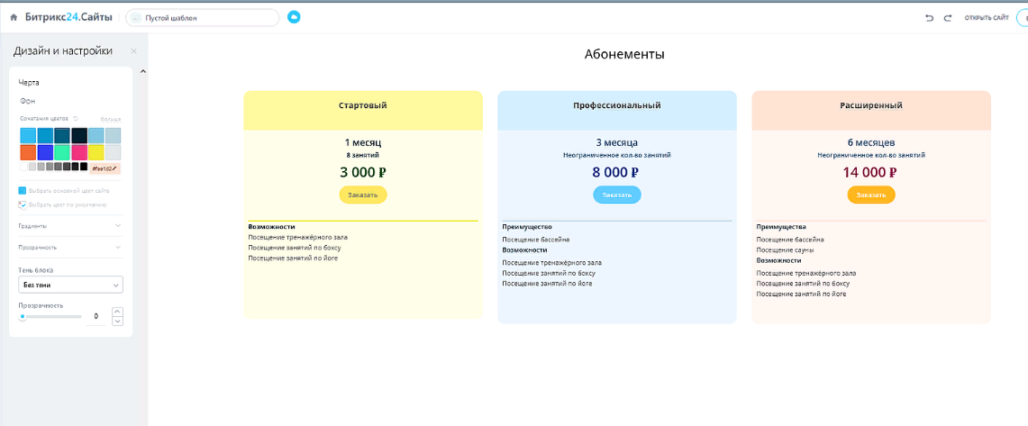 тарифов на сайте