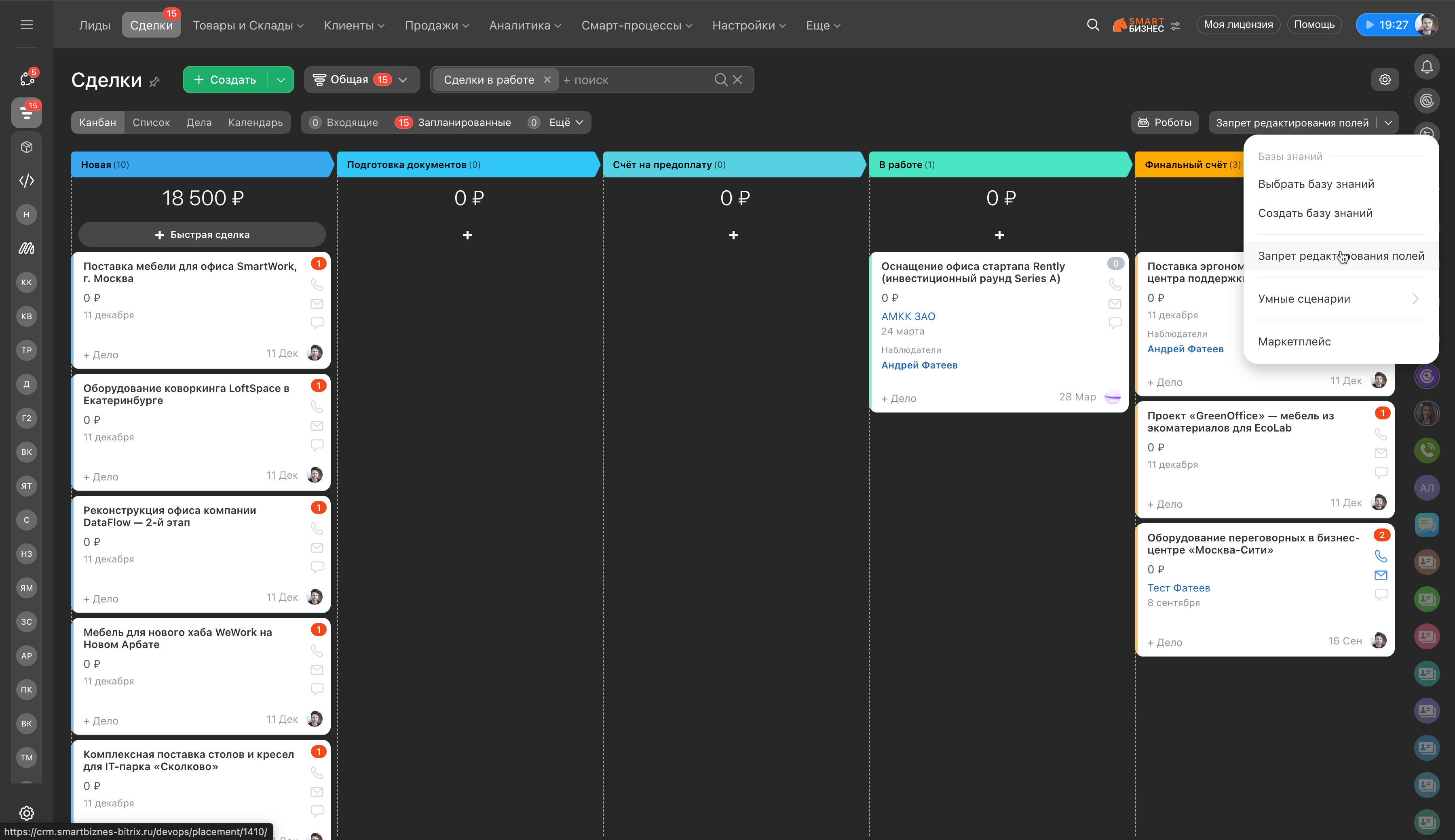 Приложение запрещает сотрудникам редактирование выбранных пользовательских полей в CRM: сделки, лиды, контакты, компании.