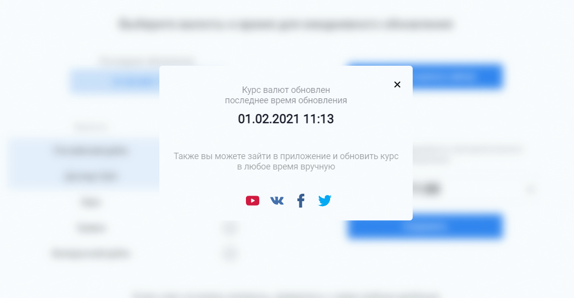 Обновление курса работает только по отношению к рублю