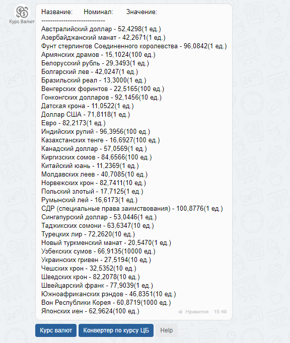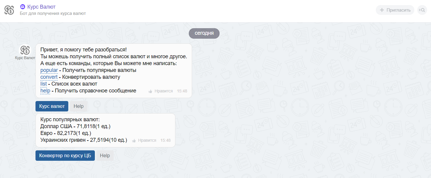 Чат-бот, который позволяет получить курсы валют и конвертировать валюту.