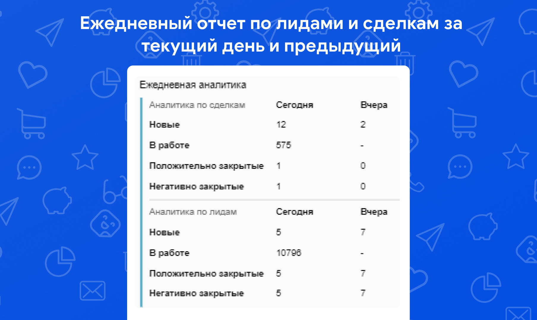 Чат бот, который присылает установленному сотруднику статистику по лидам и сделкам