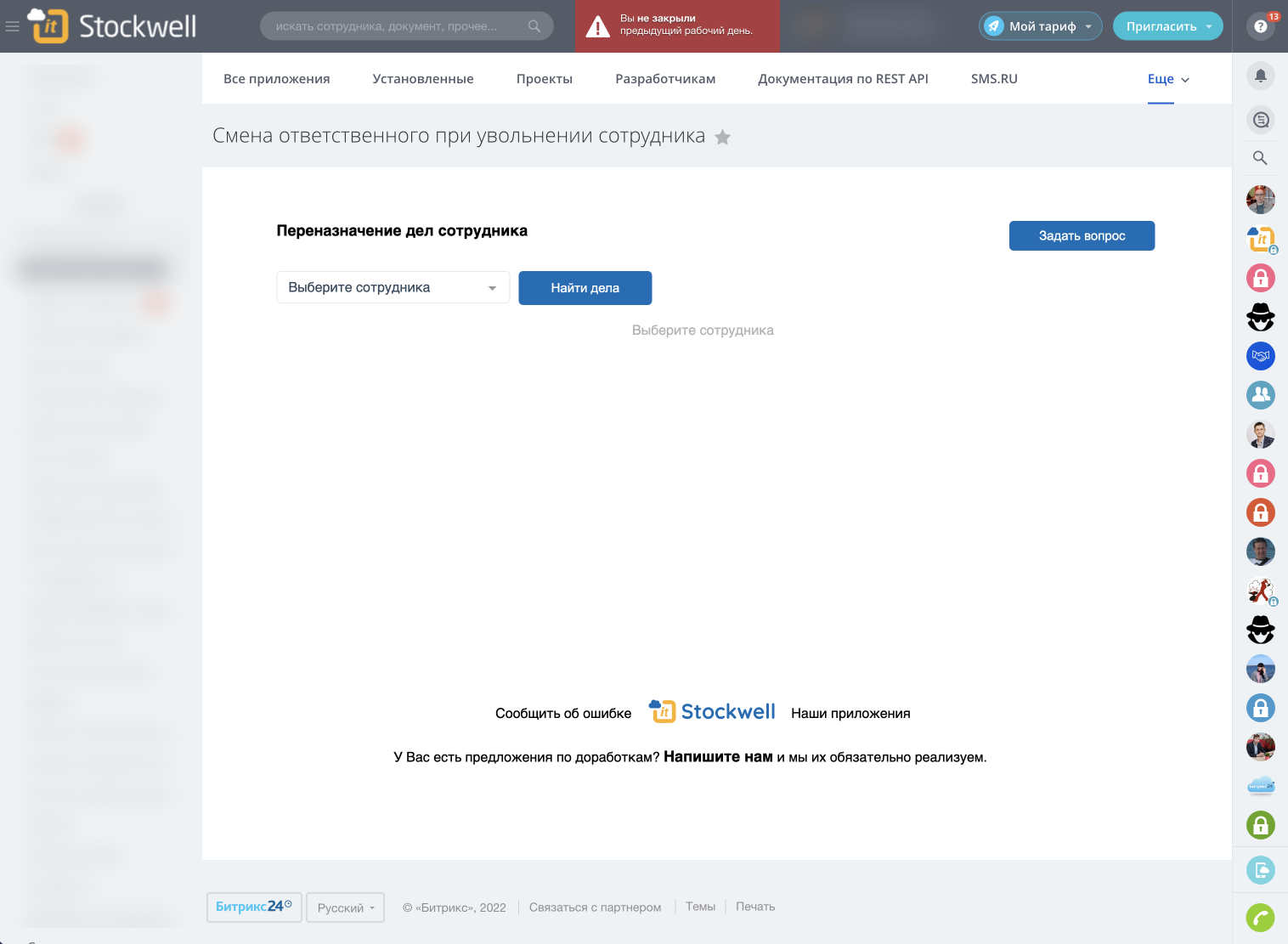 Смена ответственного при увольнении сотрудника