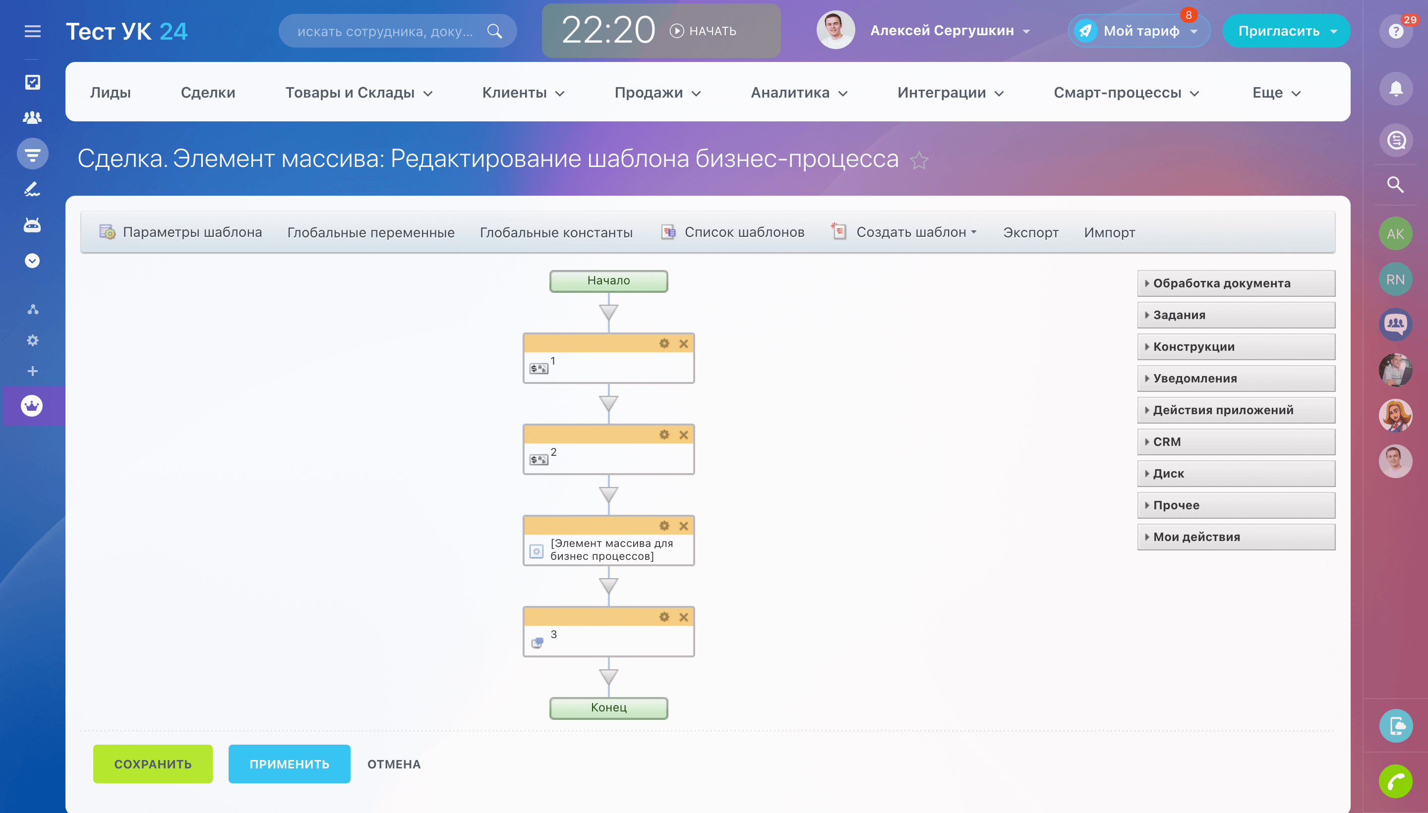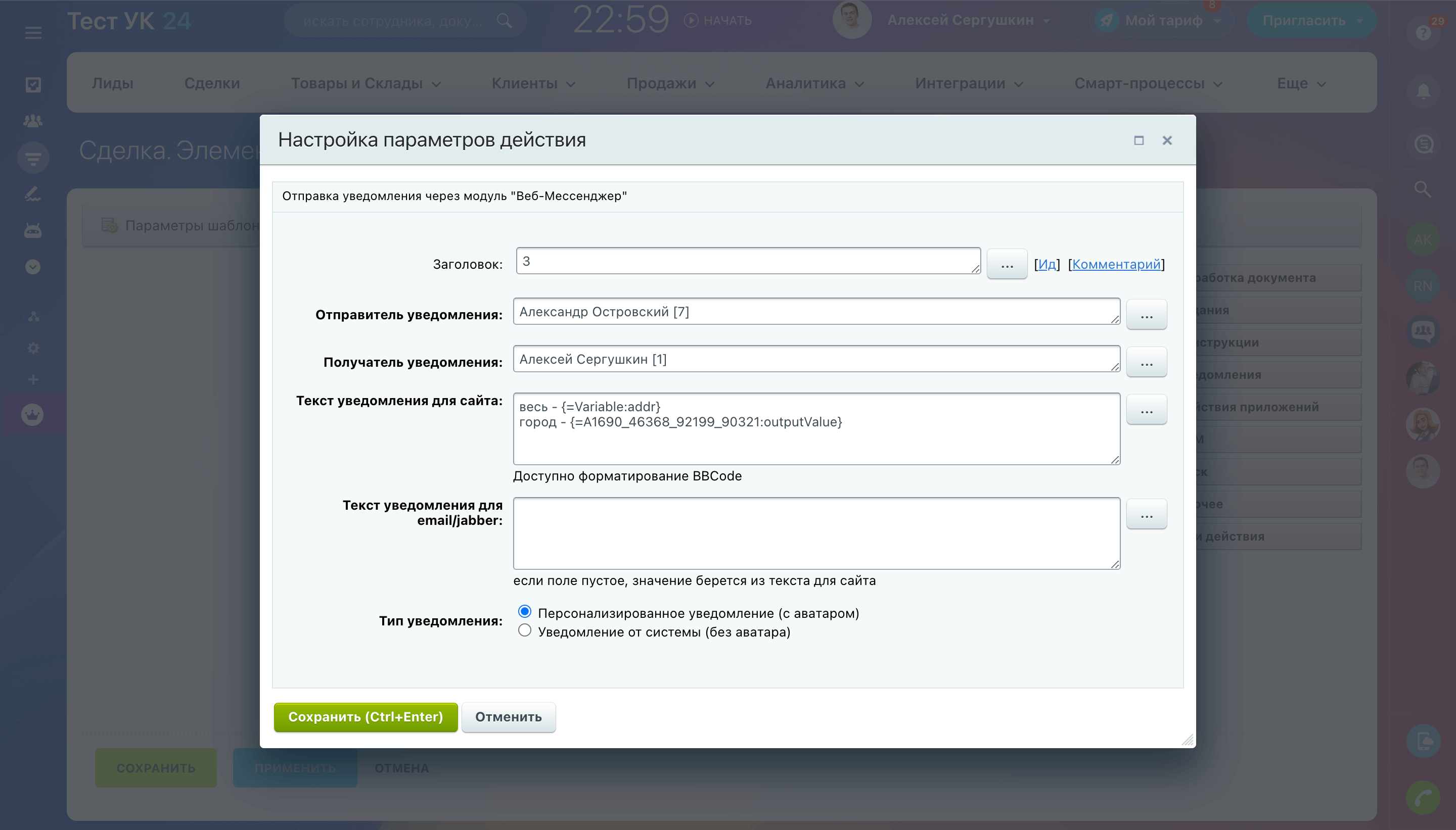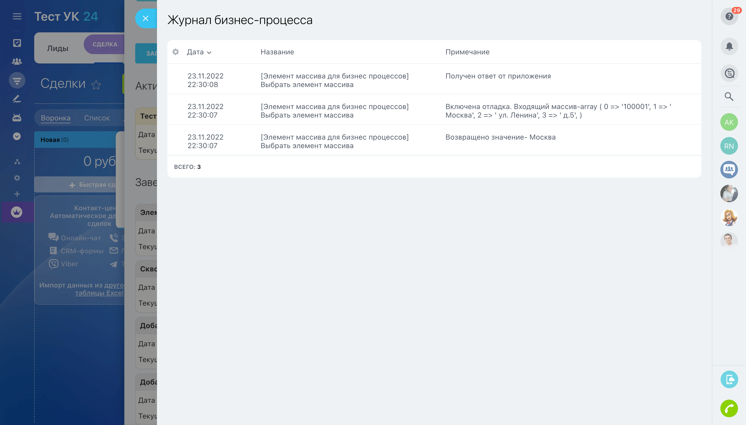 Запустим наш бизнес-процесс на сделке, а в данном примере мы делали бизнес-процесс именно на сделке, и вот что у нас получилось.