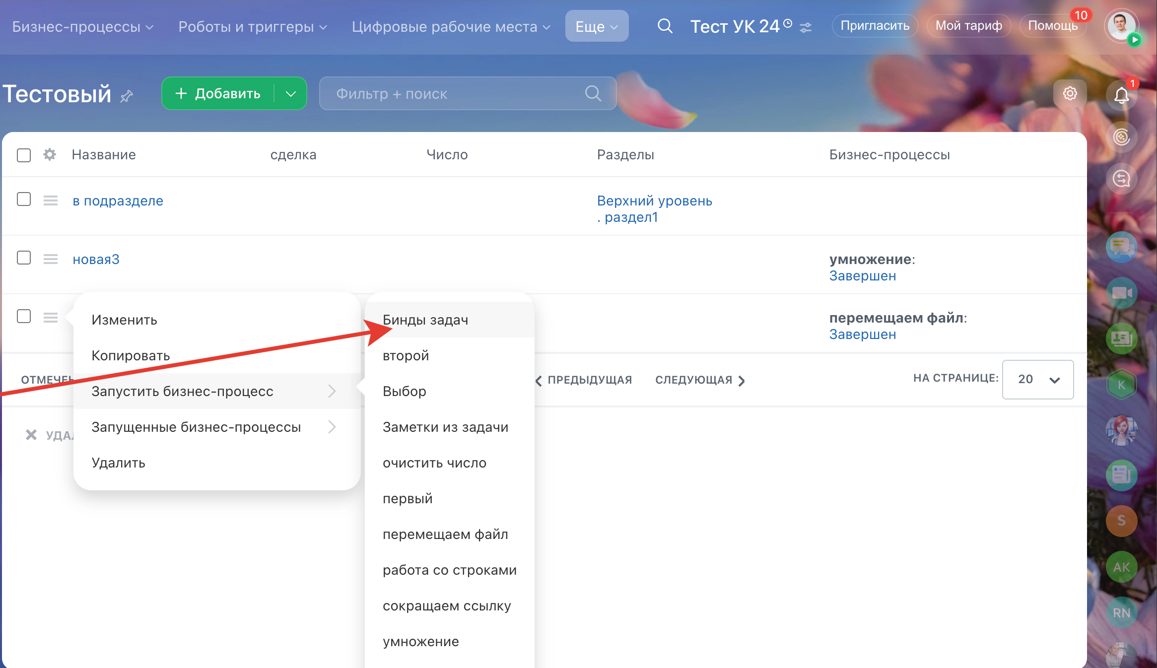 Кейс: В рамках проекта (Smart-процесса) задачи автоматически создаются при изменении статусов.