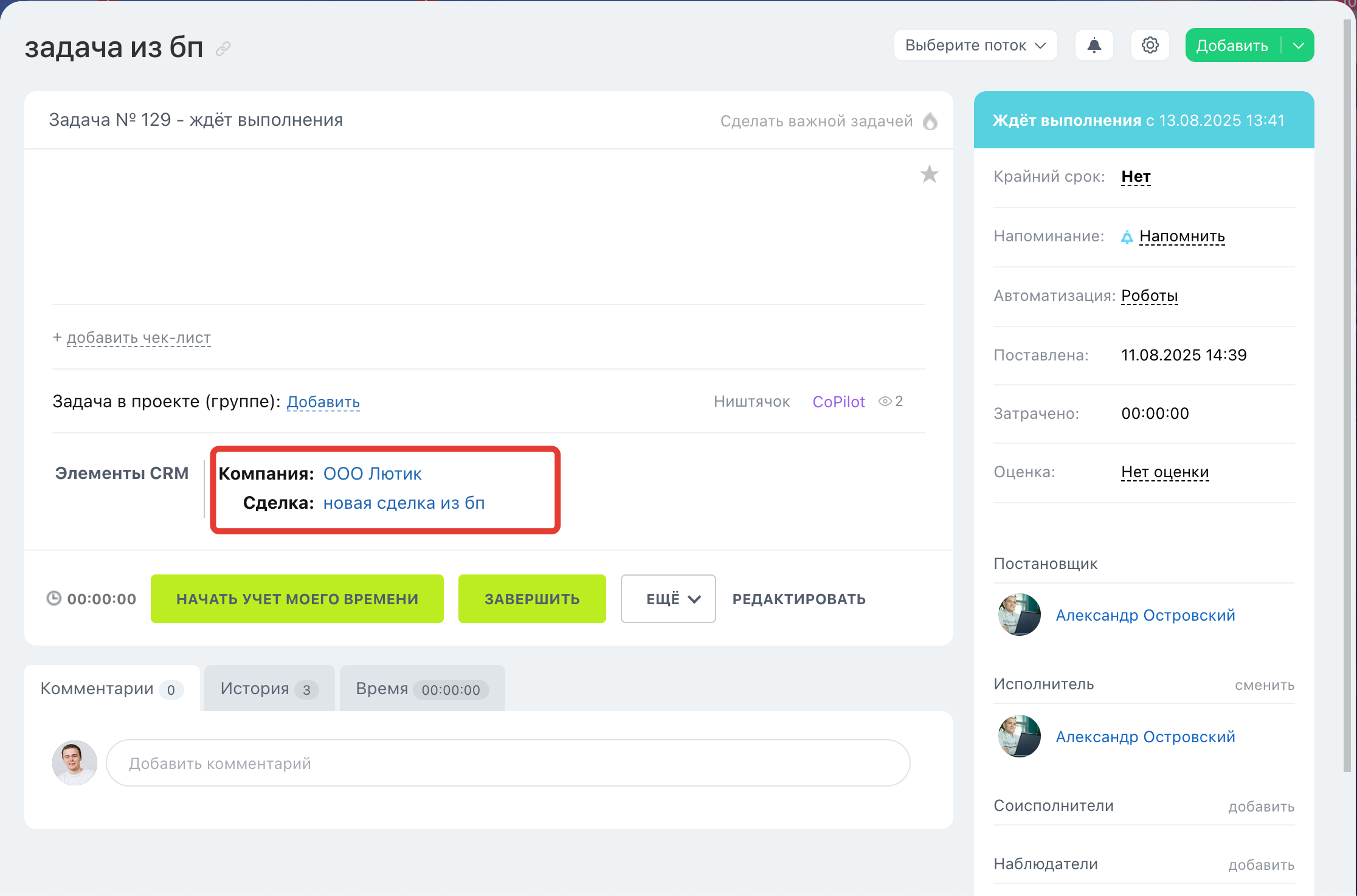 ✅ Контекстная работа – все задачи привязаны к сущностям CRM.