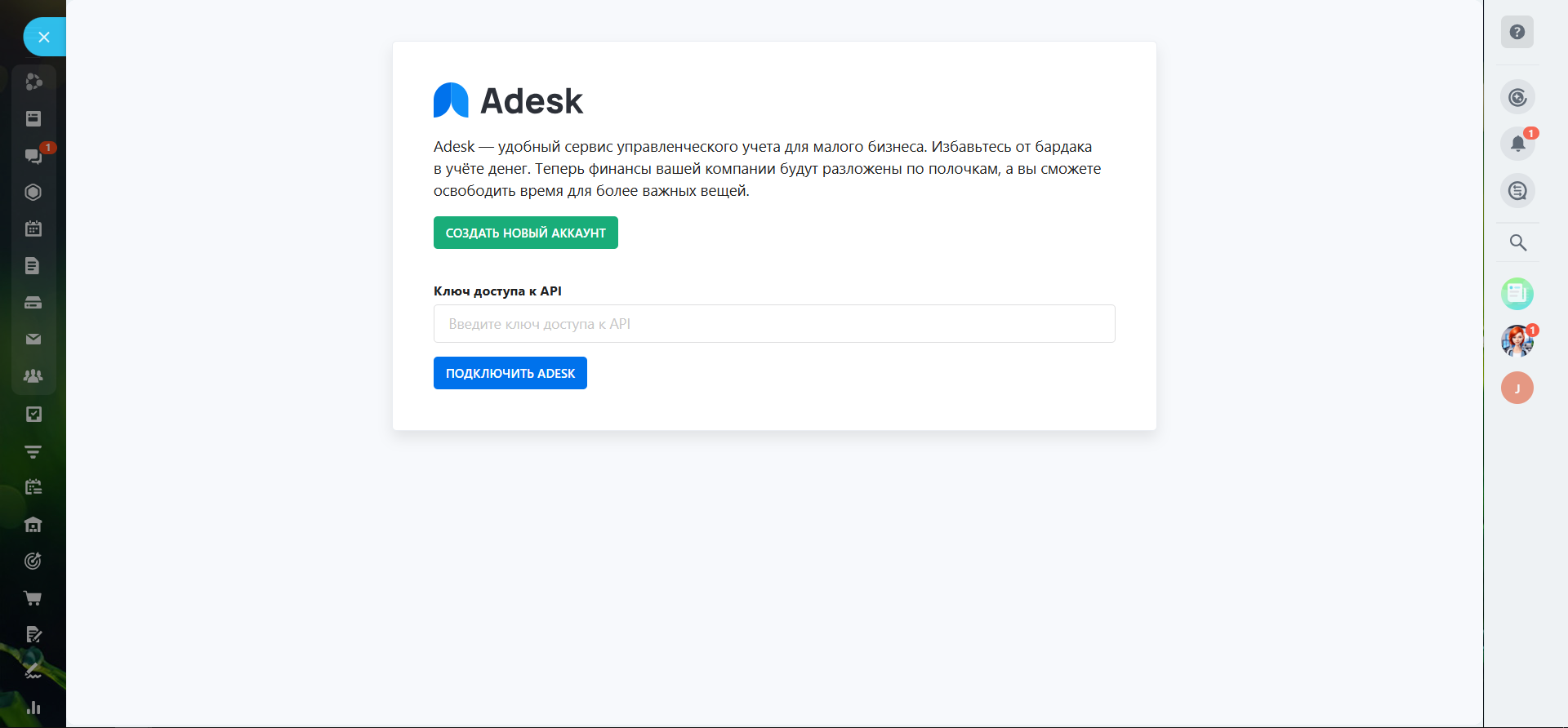 Adesk – сервис для управления деньгами в малом бизнесе. Помогает навести порядок в финансах, подсчитать прибыль, поможет спланировать будущее и проанализировать все финансовые потоки в разных направлениях. Сервис построен таким образом, чтобы он был максимально удобным и понятным для предпринимателя.